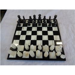 STONE CHESS SET AND PIECES, ONE PIECE BROKEN