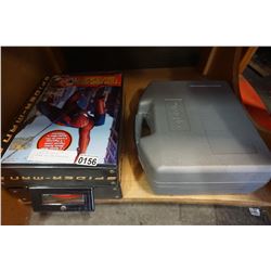 SPIDERMAN TOY CASE W/ SPIDERMAN TOYS AND MICROSCOPE SET