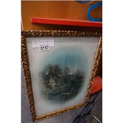 VINTAGE FRAMED ART "TOWN AT NIGHT"157 - VINTAGE FRAMED ART "TOWN AT NIGHT"