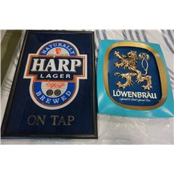 LOWEN BRAU BEER ADVERT AND HARP LAGER MIRRORED ADVERT