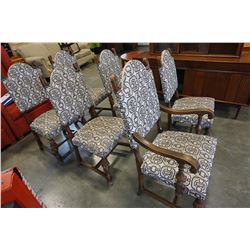 SET OF 6 ANTIQUE OAK AND UPHOLSTERED DINING CHAIRS