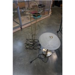 BRUSHED METAL TABLE LAMP W/ GLASS SHADE AND METAL RACKS