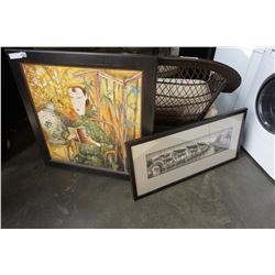 2 EASTERN PICTURES - 1 OIL ON CANVAS, 1 SKETCH PRINT