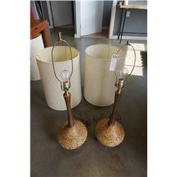 PAIR OF MCM TEAK AND CORK TABLE LAMPS WITH SHADES