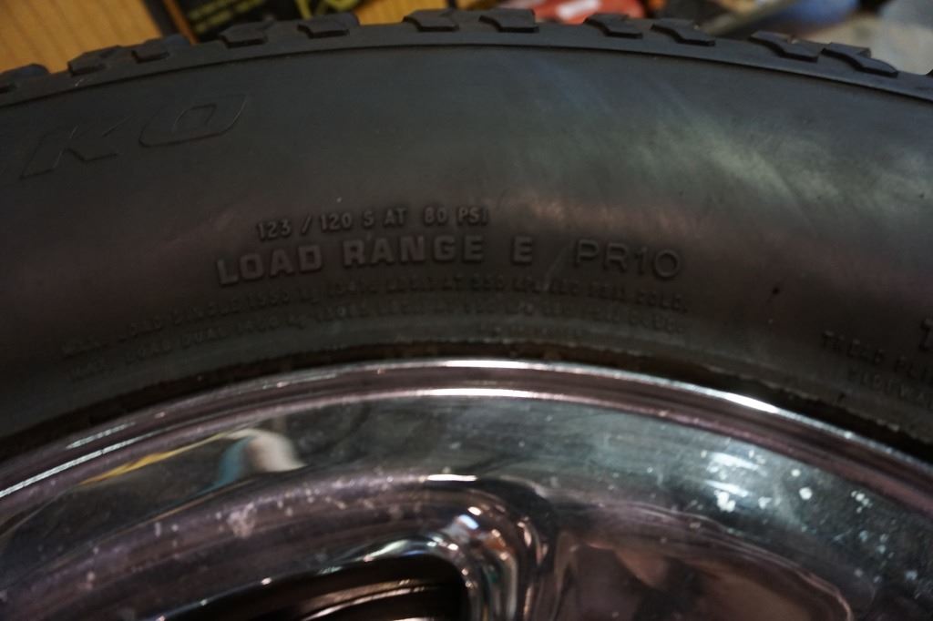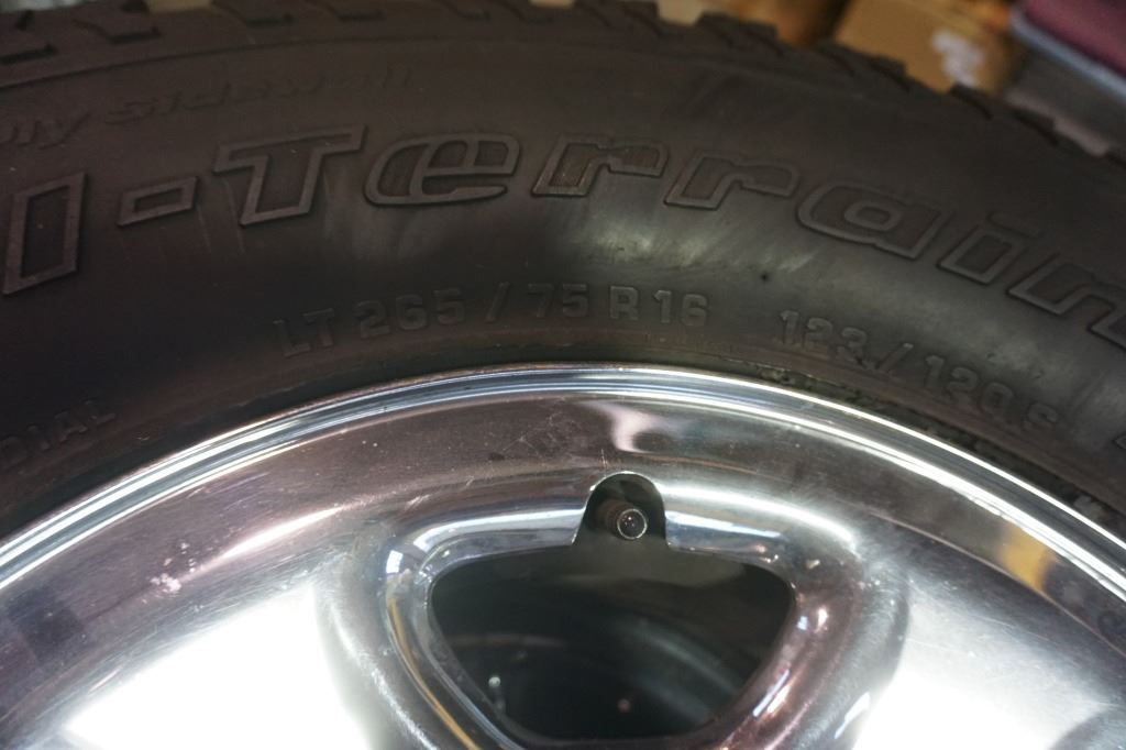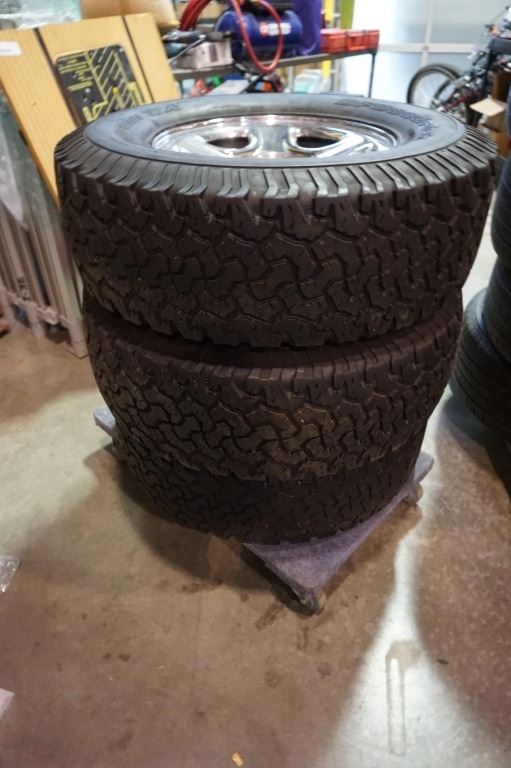Set of 4 16" 6 bolt rims with 3 LT 265/75 R16 tires mounted