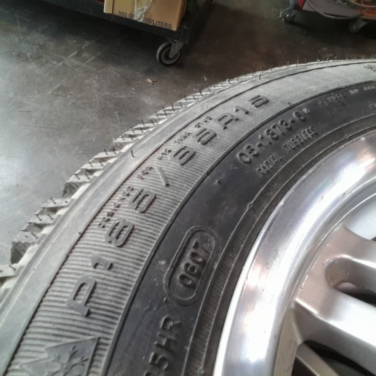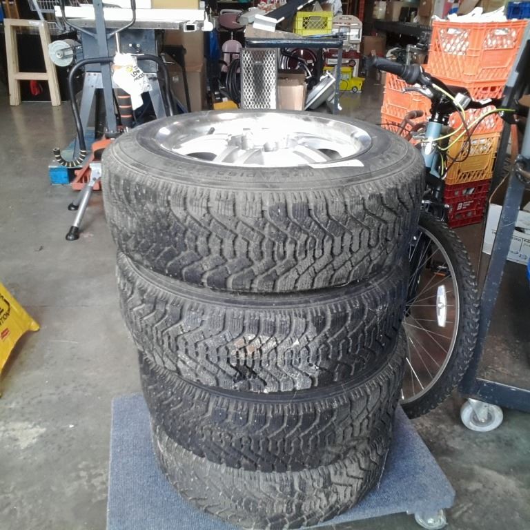 Set of four goodyear nordic p185/65 R15 tires on multi bolt rims