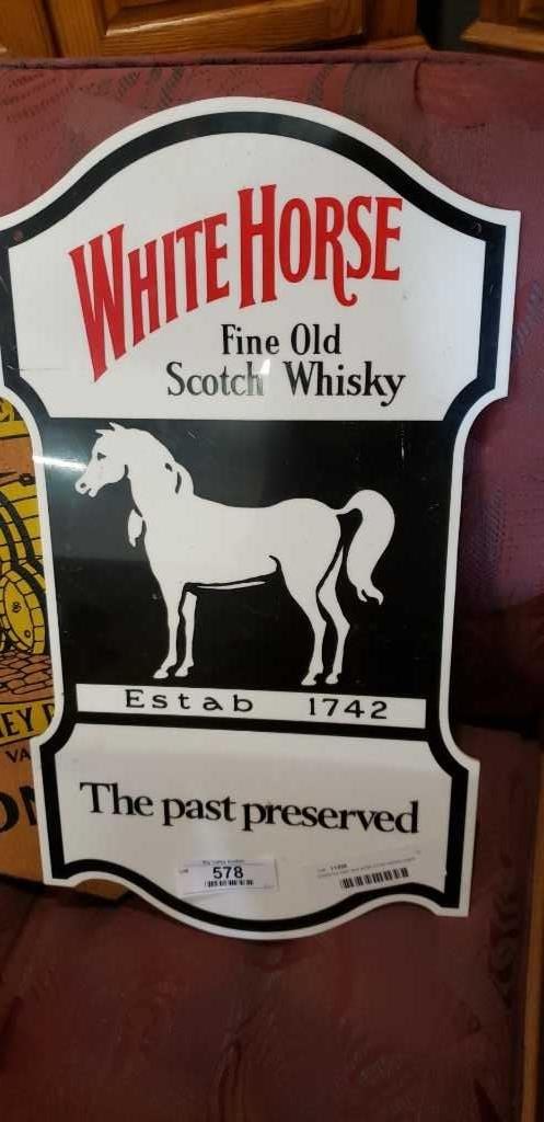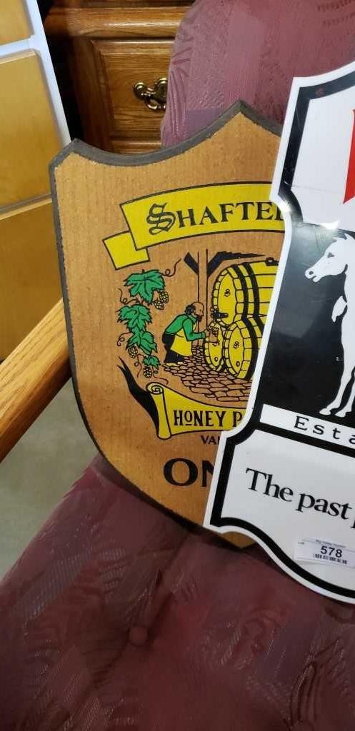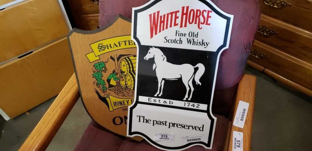 Shaftbury beer and white horse whisky signs