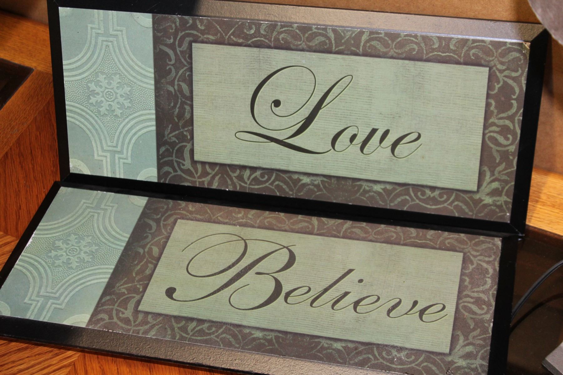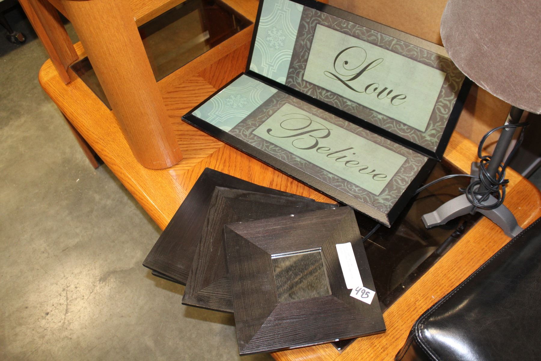 TABLE LAMP AND TWO MOTIVATIONAL SIGNS AND FOUR MIRRORS