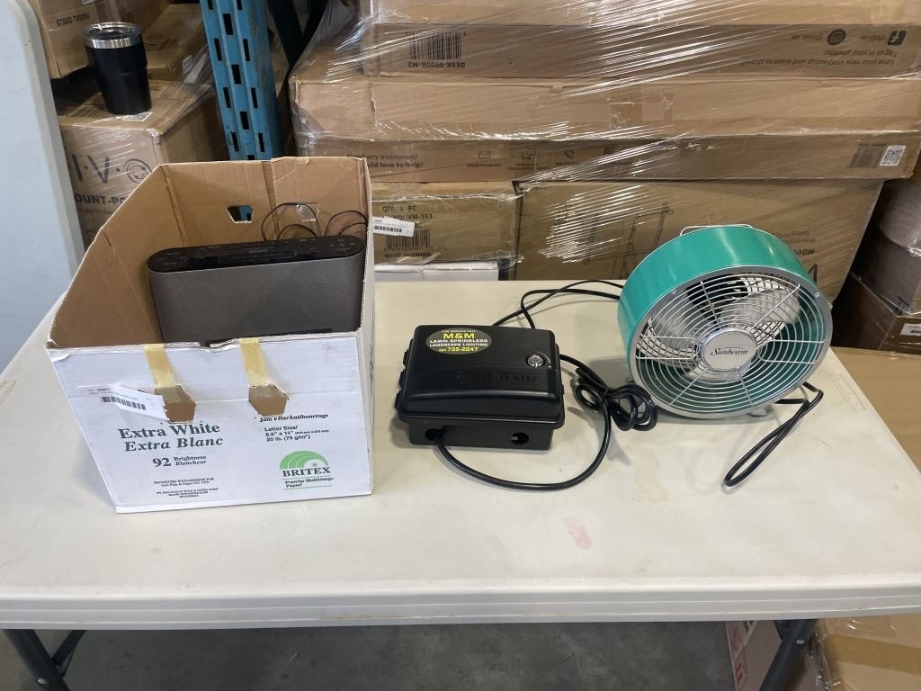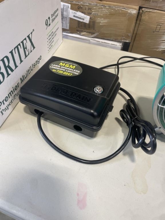TABLE TOP FAN AND HYDRO RAIN SPRINKLER CONTROLLER MODEL 04054 AND SONY CLOCK/RADIO