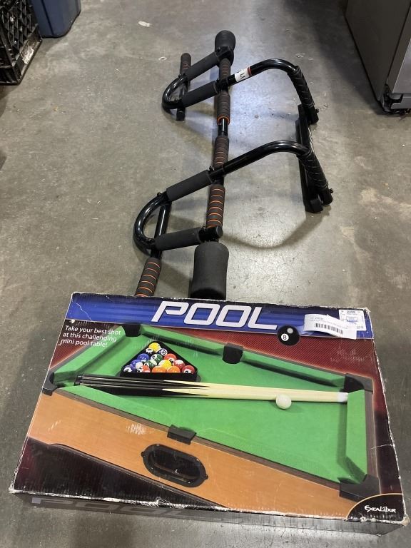 TABLE TOP POOL TABLE AND OVER DOOR PULL UP BAR