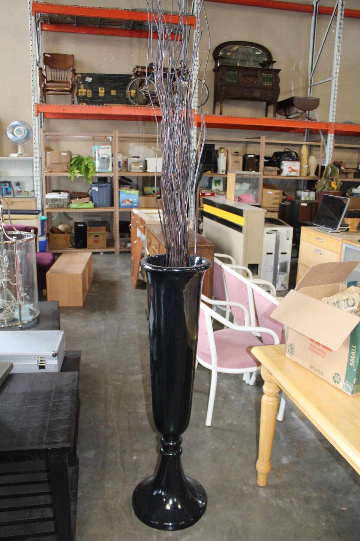 TALL BLACK 4 FOOT RESIN VASE WITH STICKS