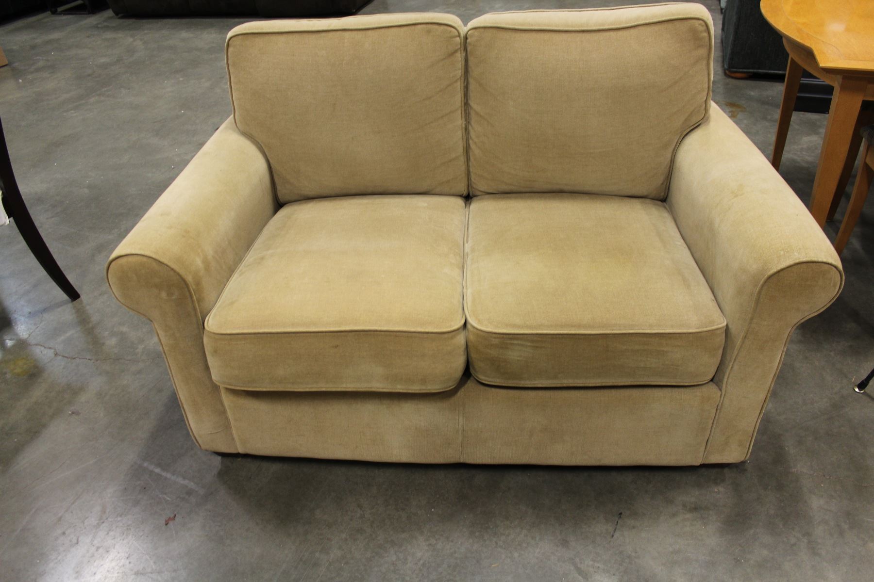 TAN MICROFIBRE MODERN LOVESEAT
