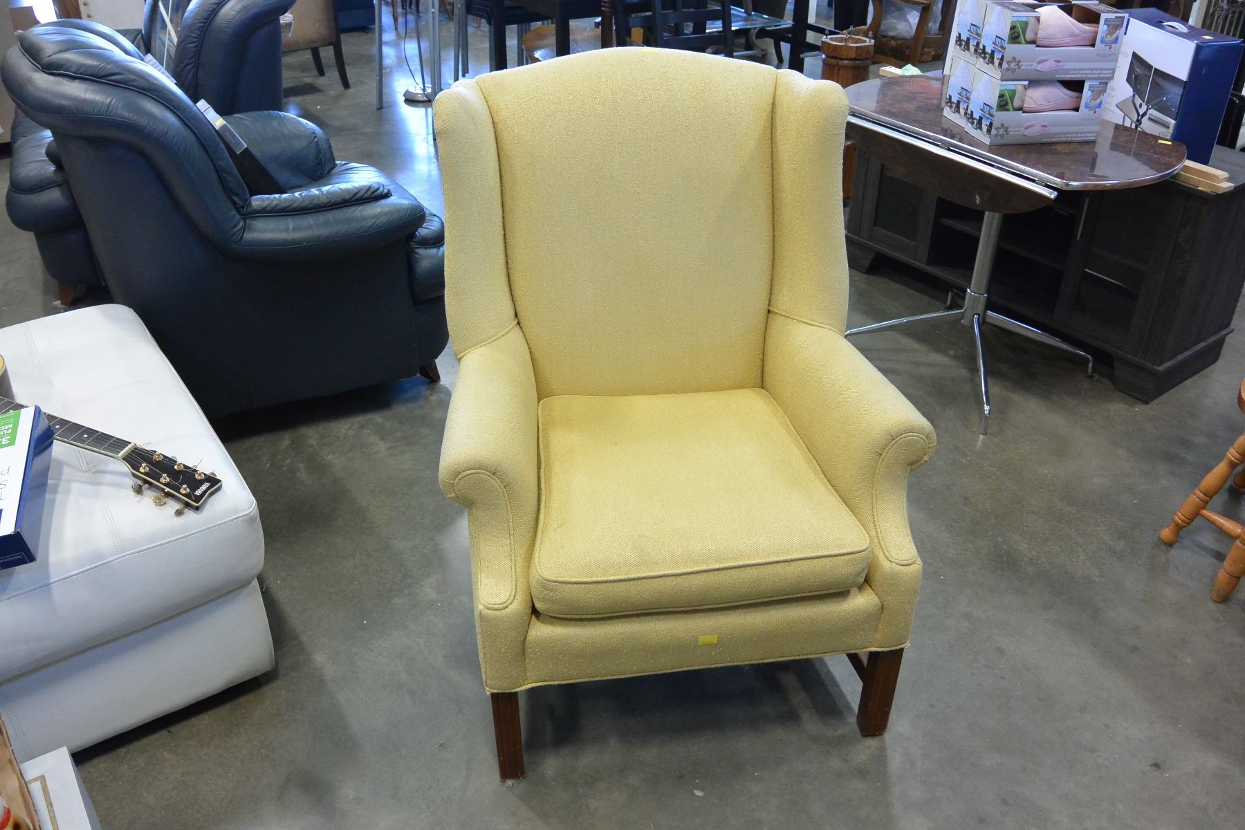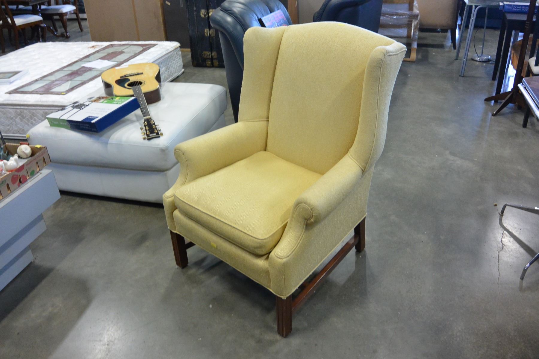 TAN UPHOLSTERED WINGBACK CHAIR