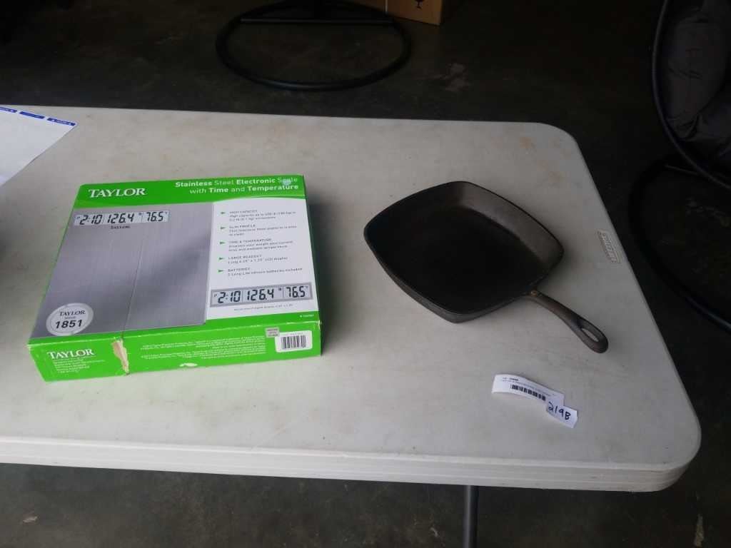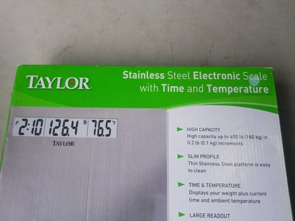TAYLOR STAINLESS STEEL ELECTRONIC SCALE AND CAST IRON MADE IN USA SQUARE SKILLED 10 1/4