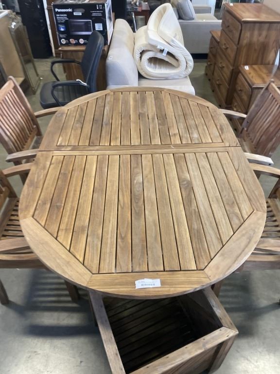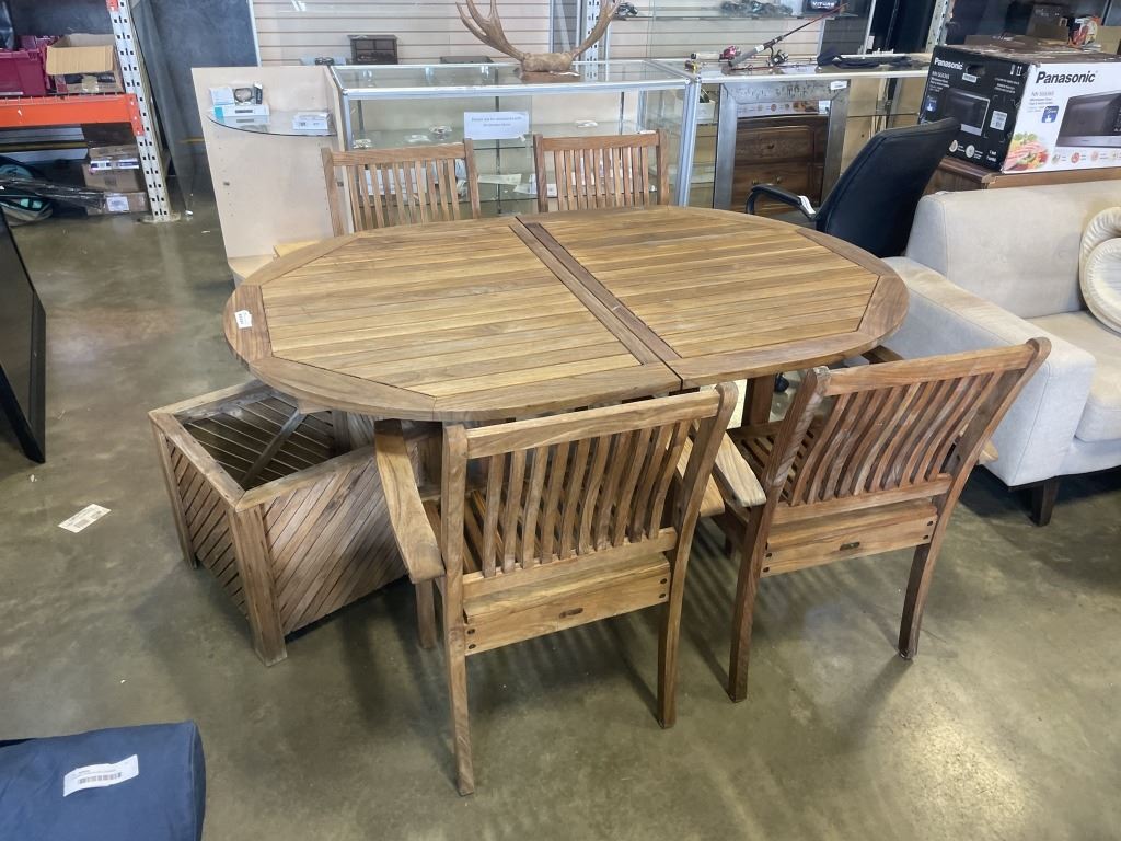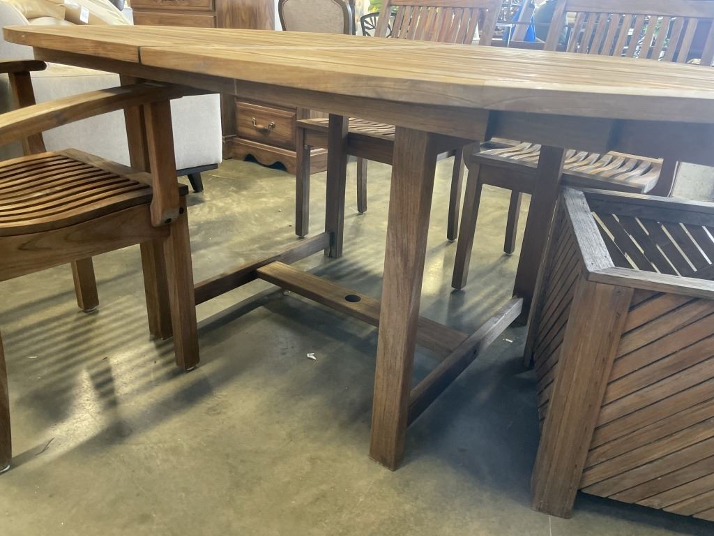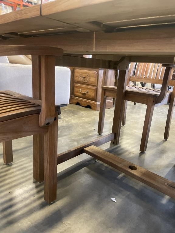 TEAK BOSQUEMA PATIO TABLE WITH 4 CHAIRS AND MATCHING PLANTER BOX