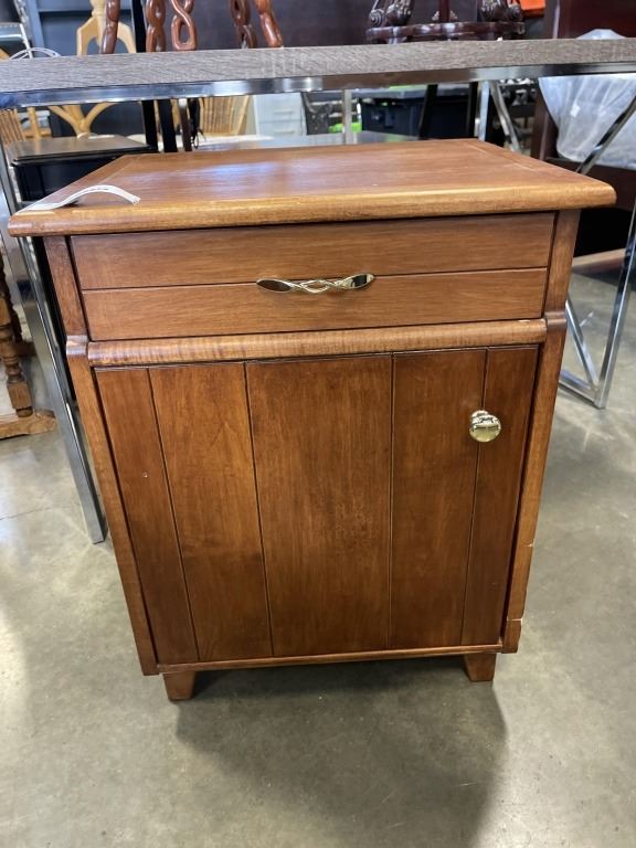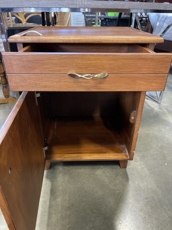 TEAK SIDE TABLE WITH DRAWER AND CUPBOARD