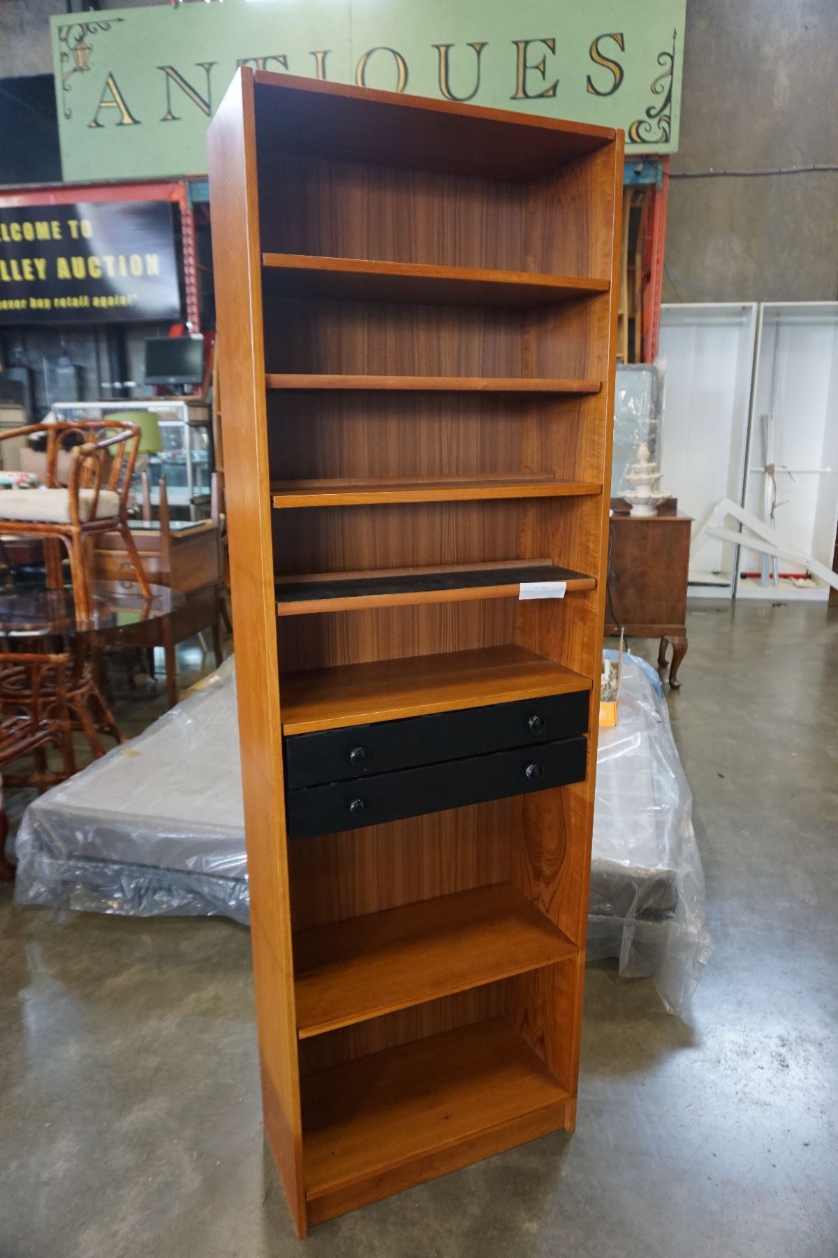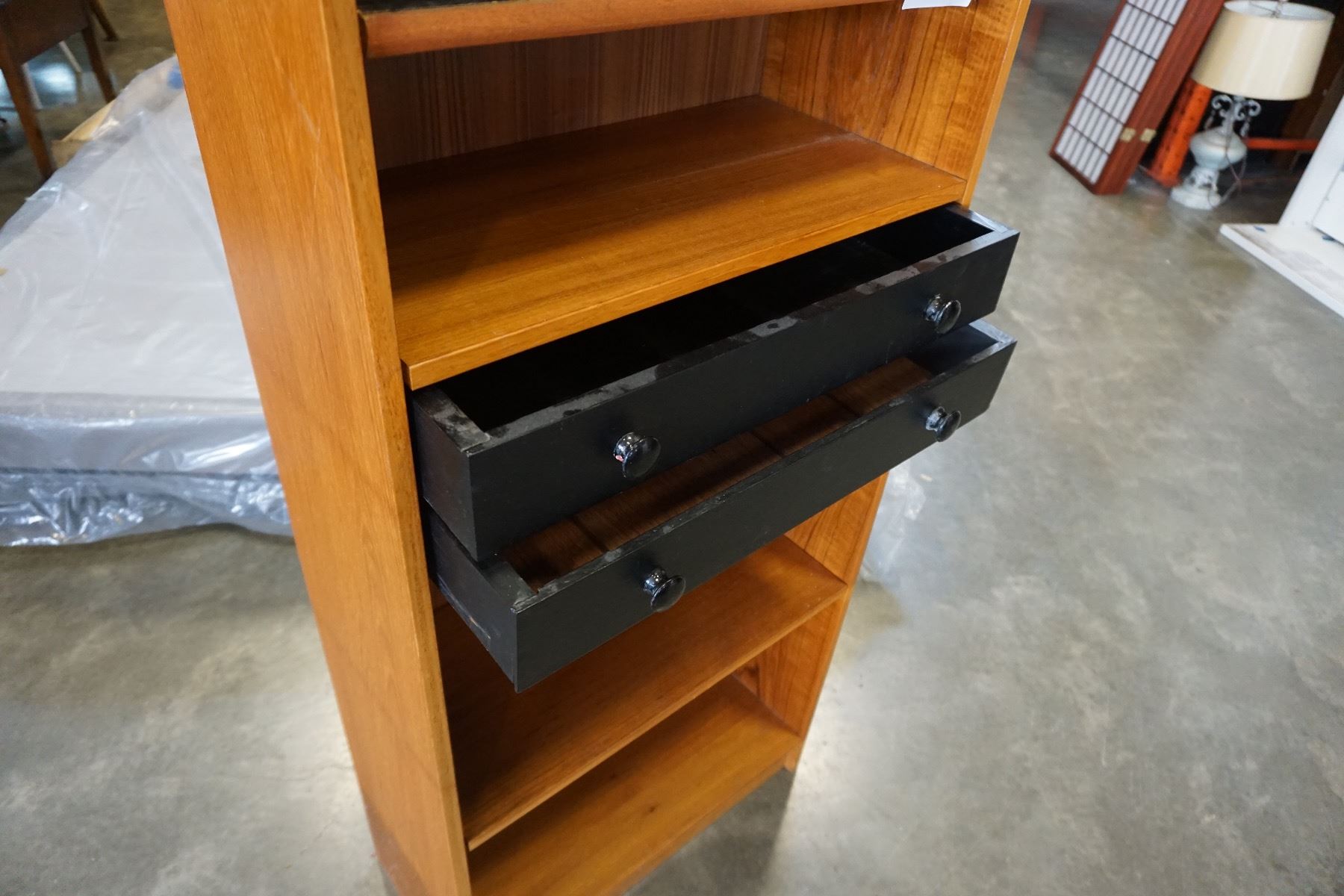 TEAK W/ BLACK DRAWERS BOOKSHELF