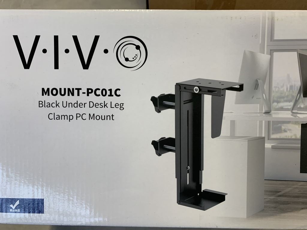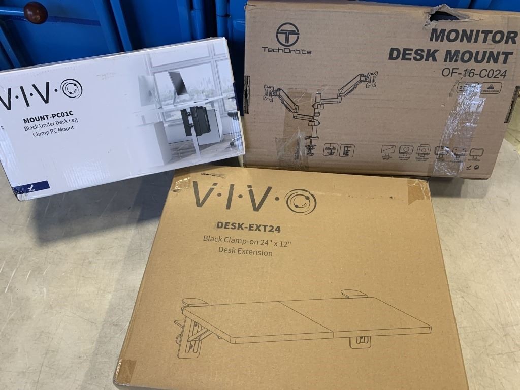TECH ORBITS DESK MONITOR MOUNT, VIVO CLAMP ON DESK EXTENSION, AND PC MOUNT