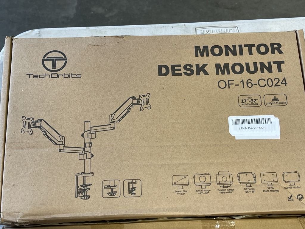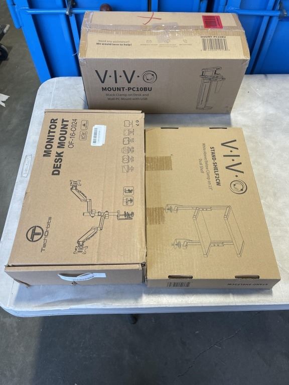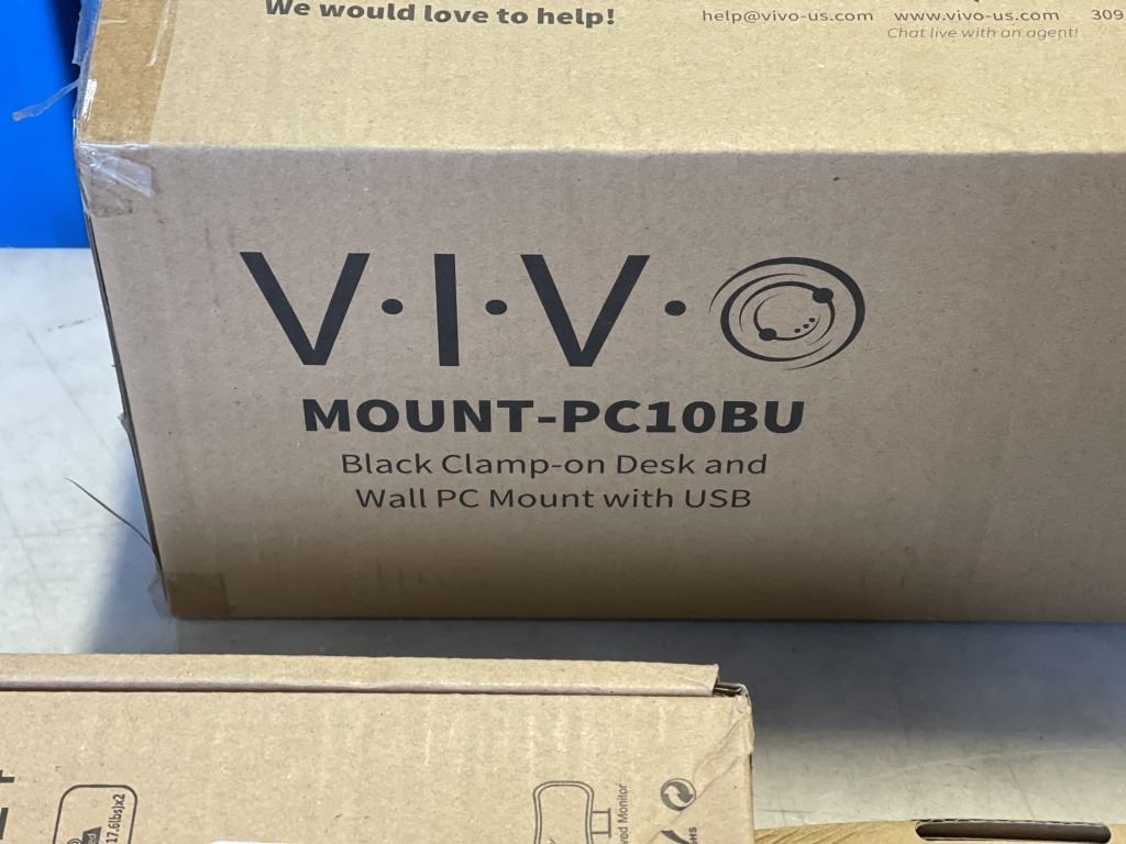 TECH ORBITS DESK MONITOR MOUNT, VIVO CLAMP ON DESK EXTENSION, AND PC MOUNT