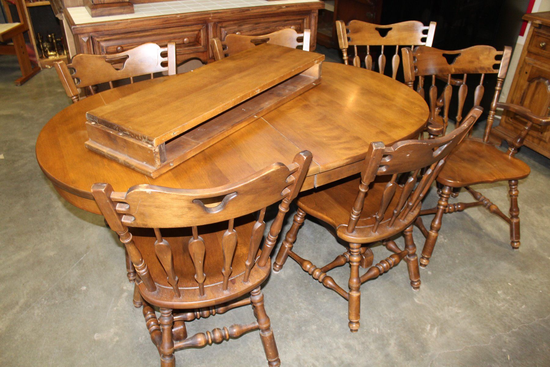 TEMPLE STEWART TABLE WITH 2 LEAFS AND SIX CHAIRS