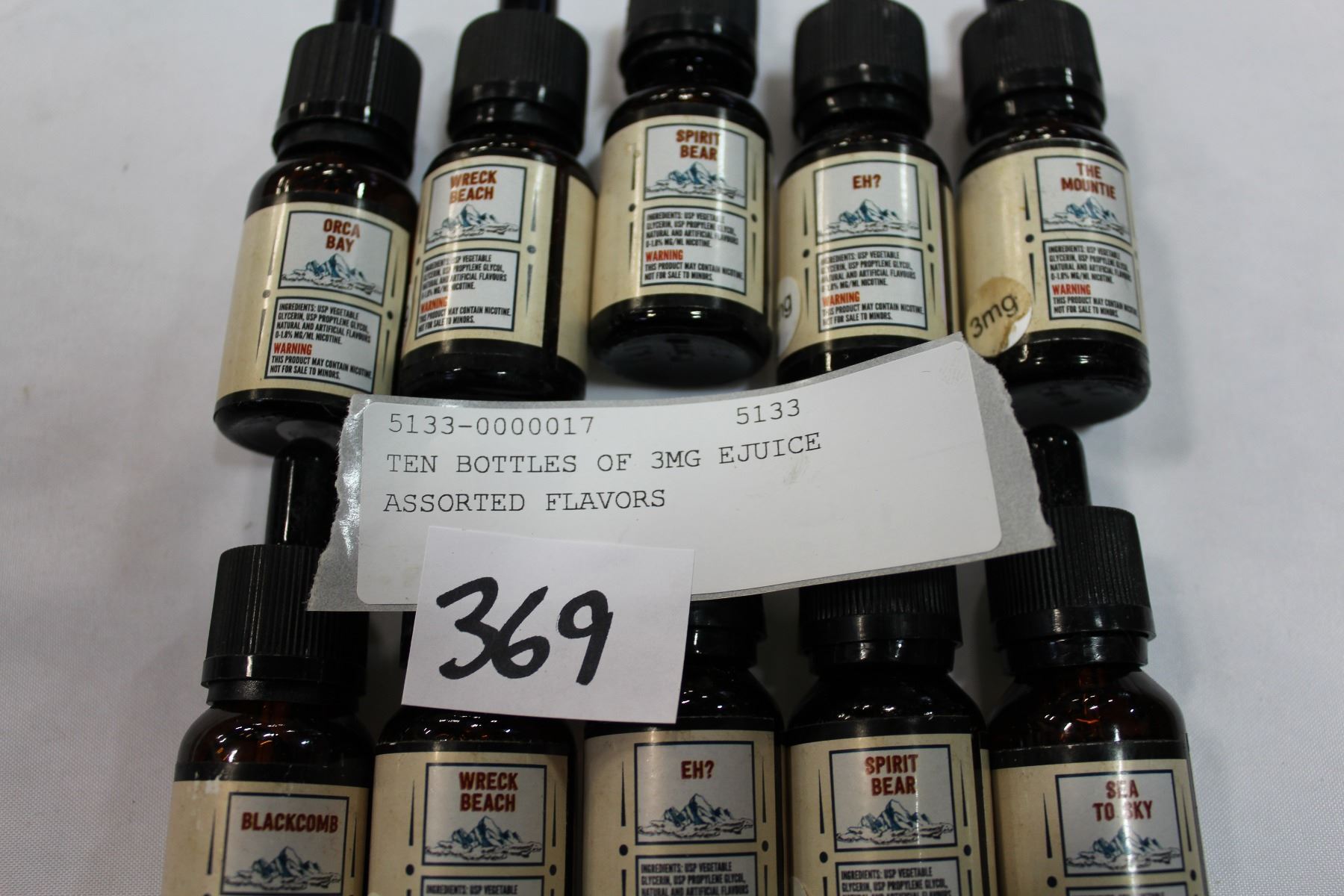 TEN BOTTLES OF 3MG EJUICE ASSORTED FLAVORS