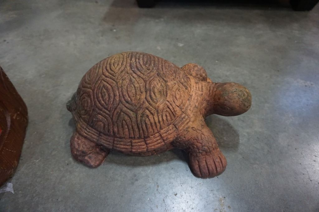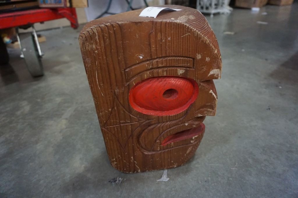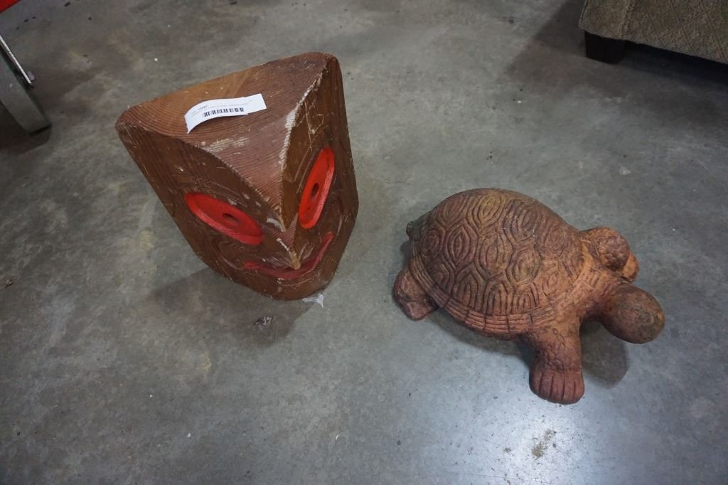 TERACOTTA TURTLE AND CARVED FIRST NATIONS MASK