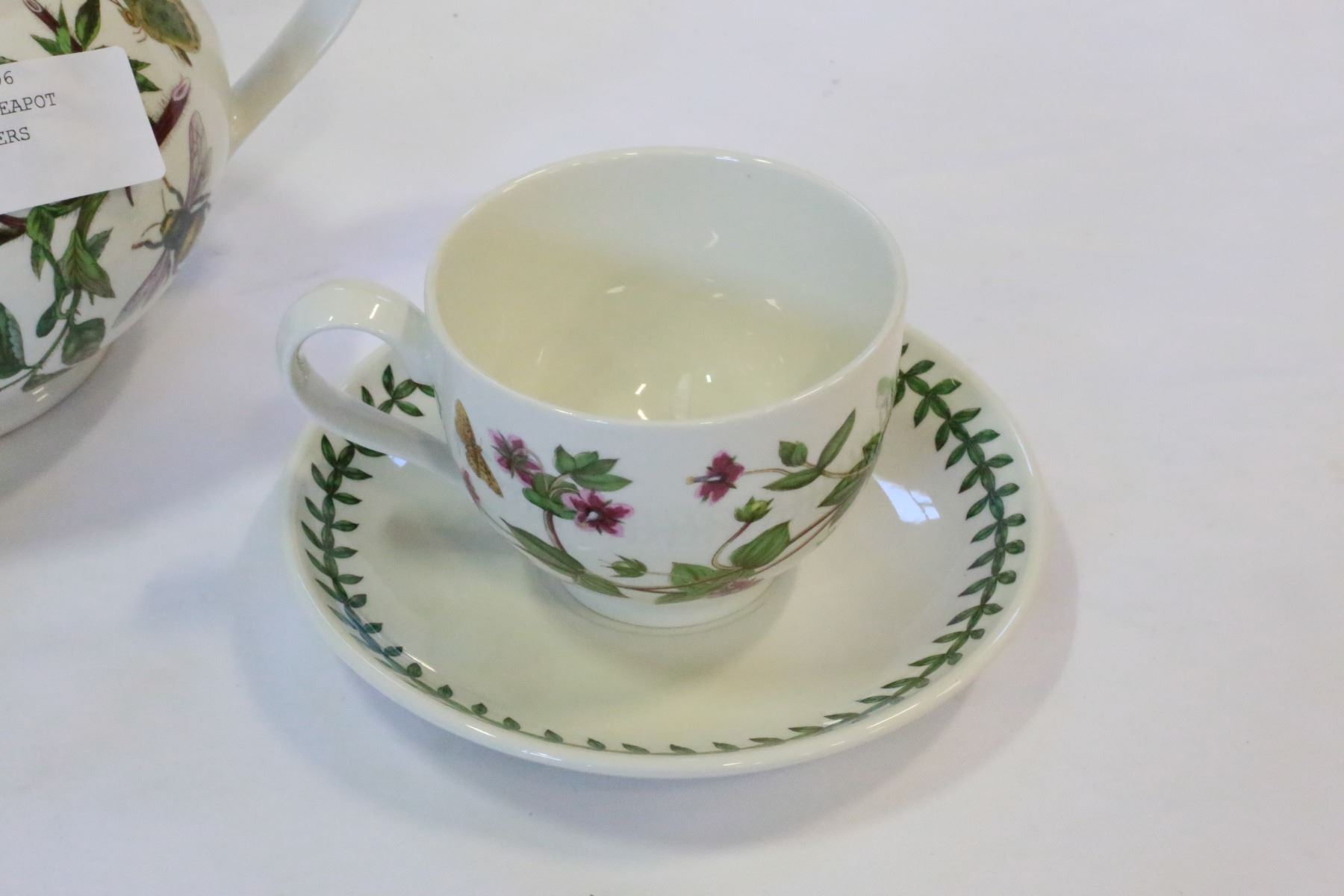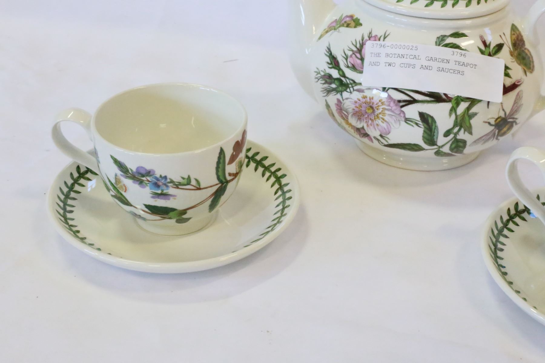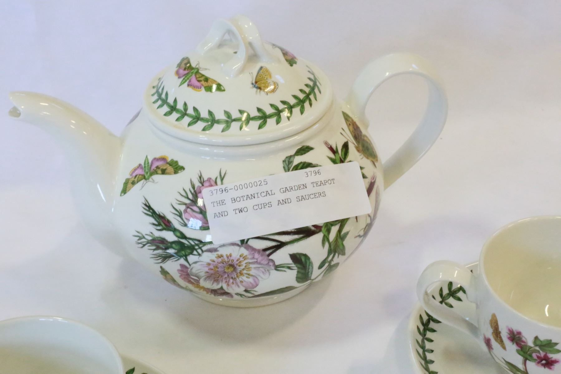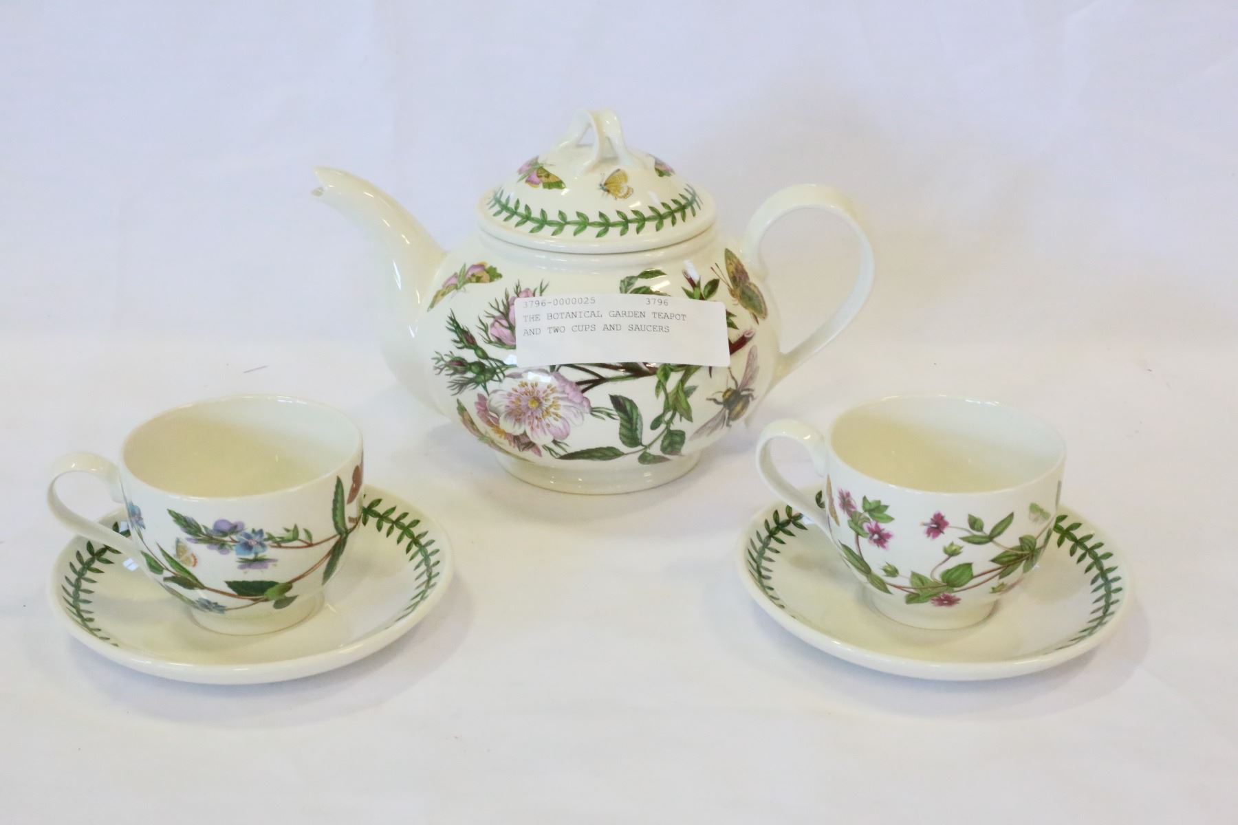THE BOTANICAL GARDEN TEAPOT AND TWO CUPS AND SAUCERS