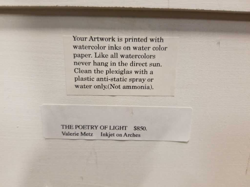 THE POETRY OF LIGHT BY VALERIE METZ, INKJET ON ARCHES, GALLERY PRICE $850