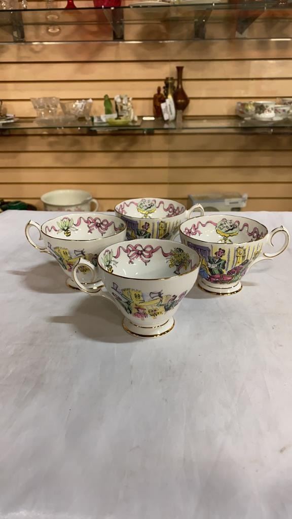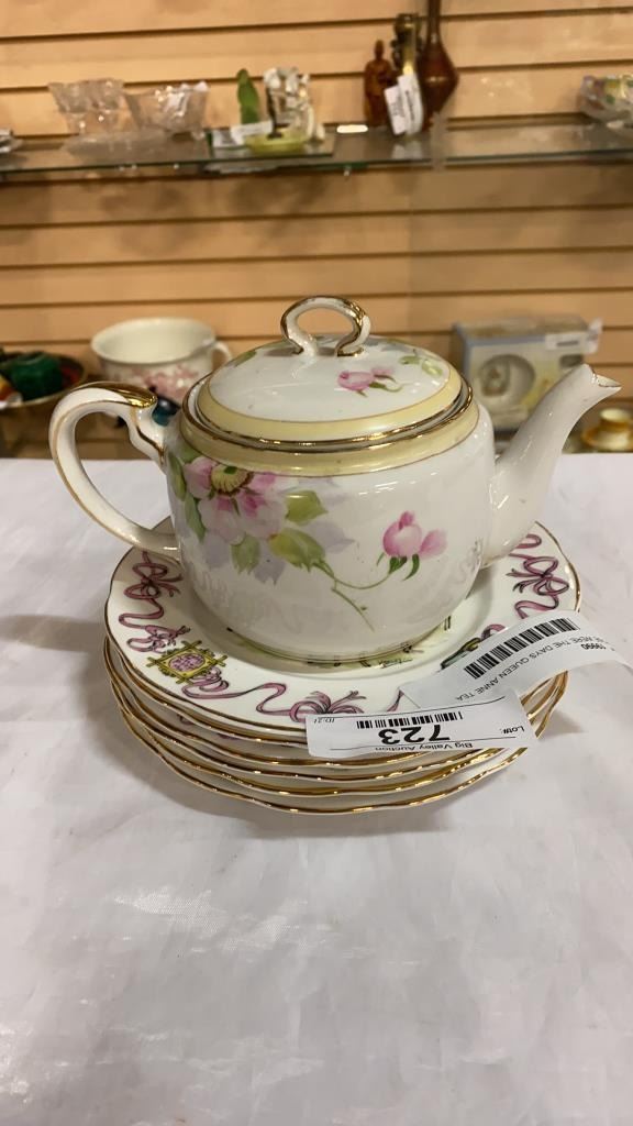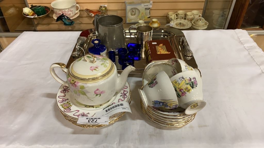 THOSE WERE THE DAYS QUEEN ANNE TEA SET, SILVER PLATE TRAY AND COLLECTABLES, COBALT GLASS CONDIMENT S