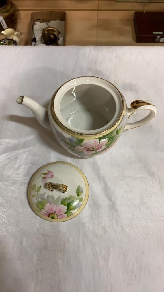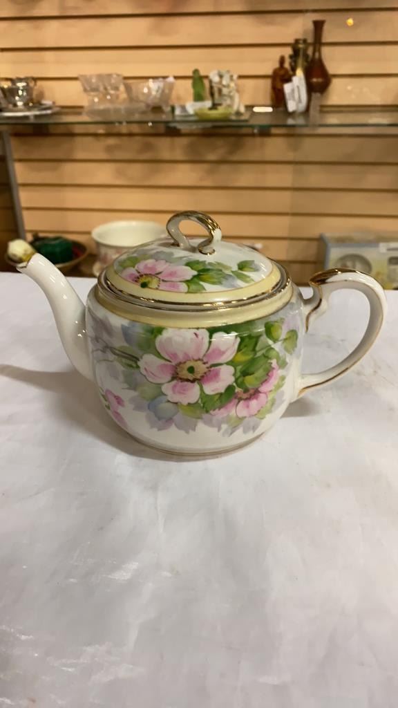 THOSE WERE THE DAYS QUEEN ANNE TEA SET, SILVER PLATE TRAY AND COLLECTABLES, COBALT GLASS CONDIMENT SET, NIPPON TEAPOT