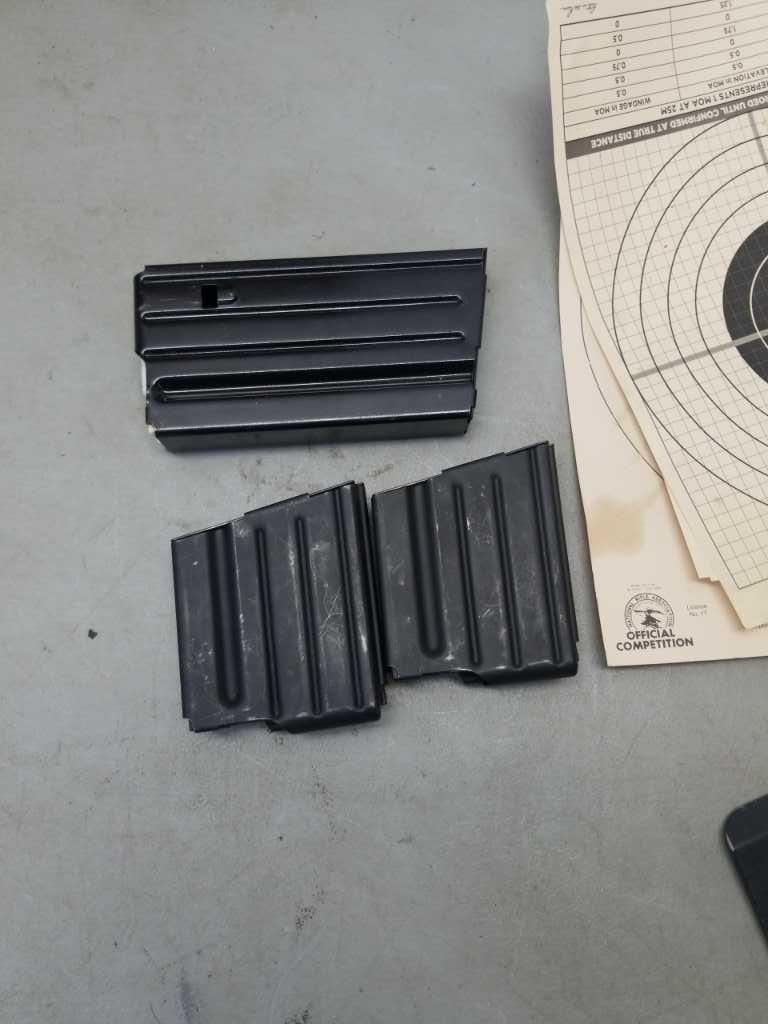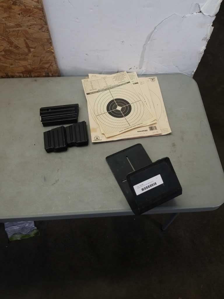 THREE 308 10 ROUND MAGAZINES, TARGETS AND STAND