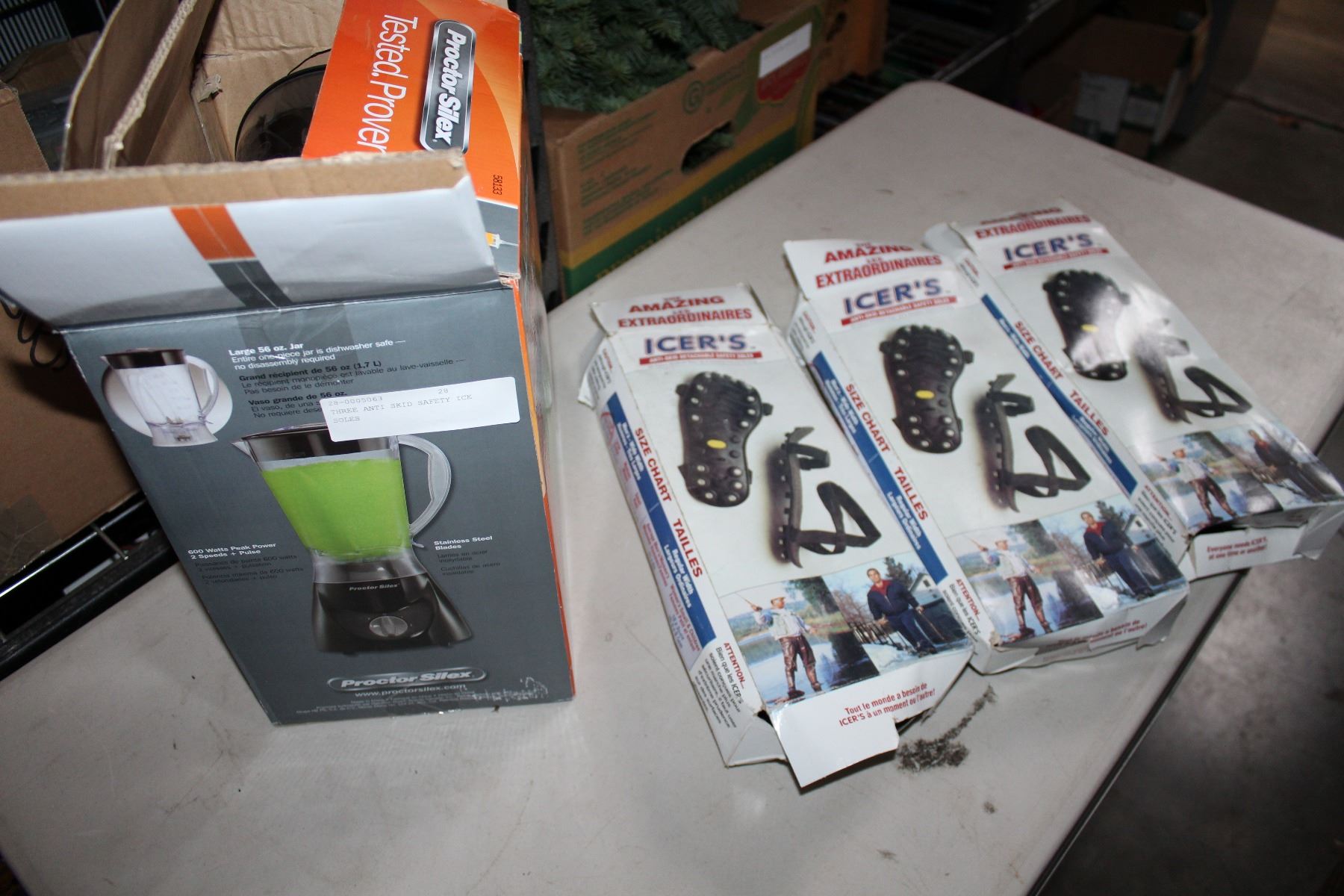 THREE ANTI SKID SAFETY ICE SOLES AND BLENDER