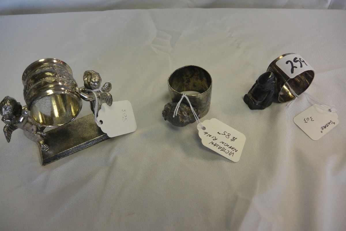 THREE ANTIQUE NAPKIN RING HOLDERS