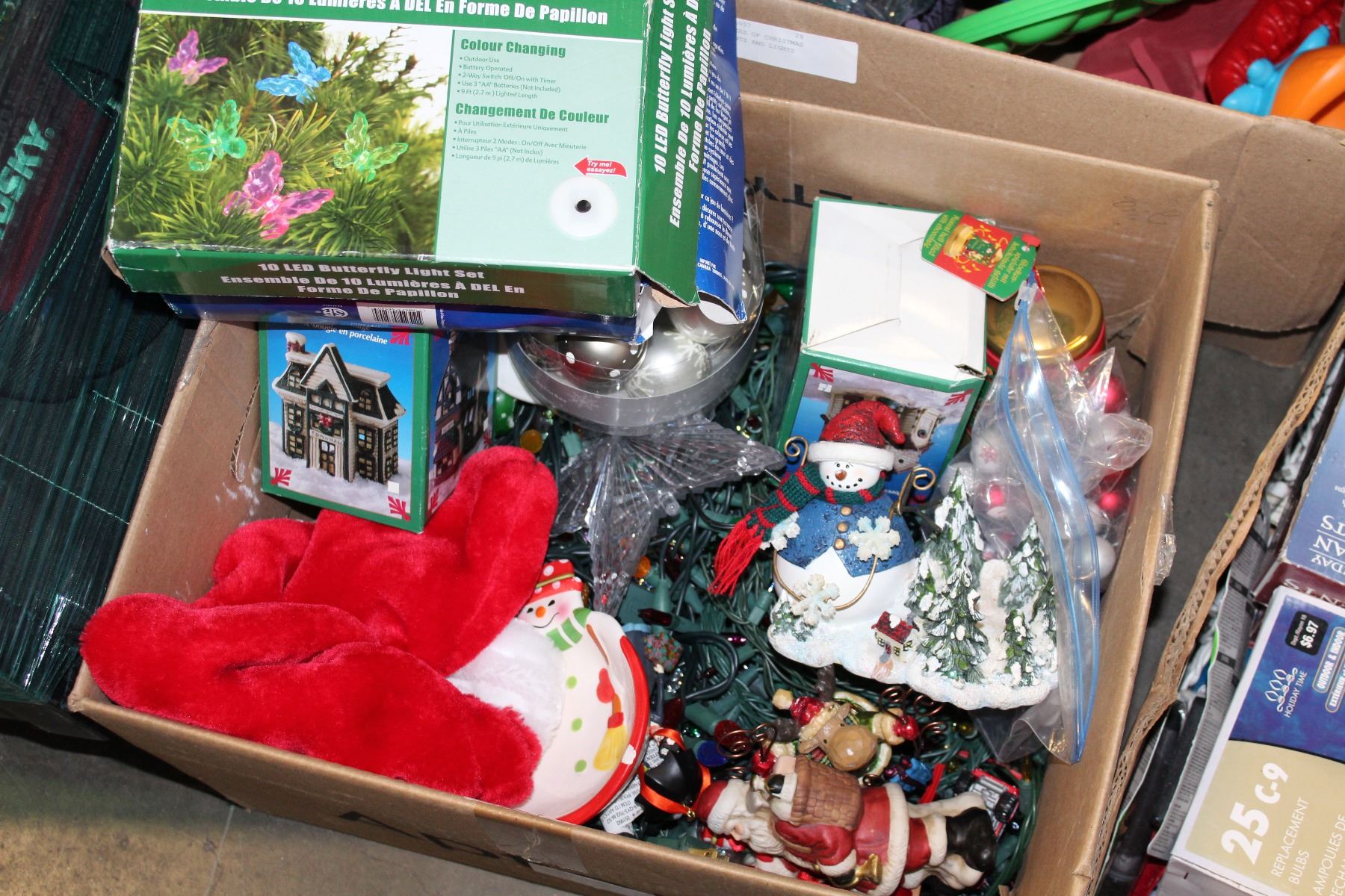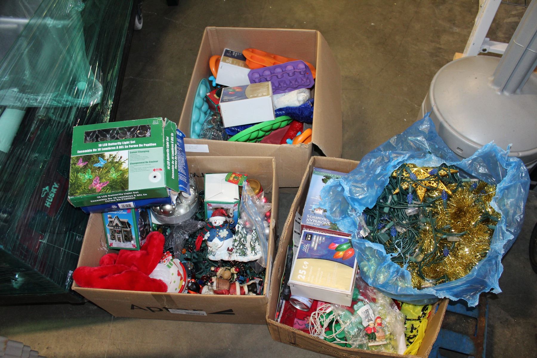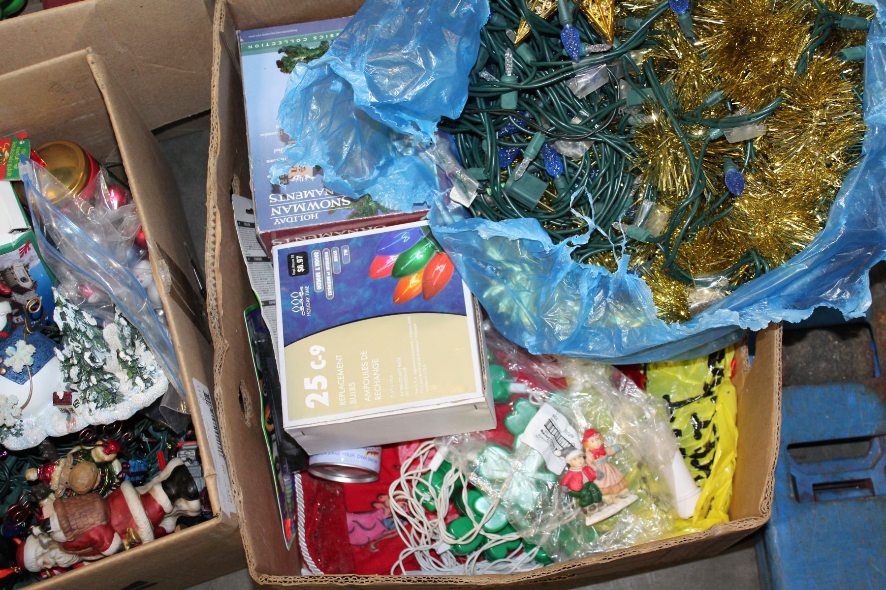 THREE BOXES OF CHRISTMAS ORNAMENTS AND LIGHTS