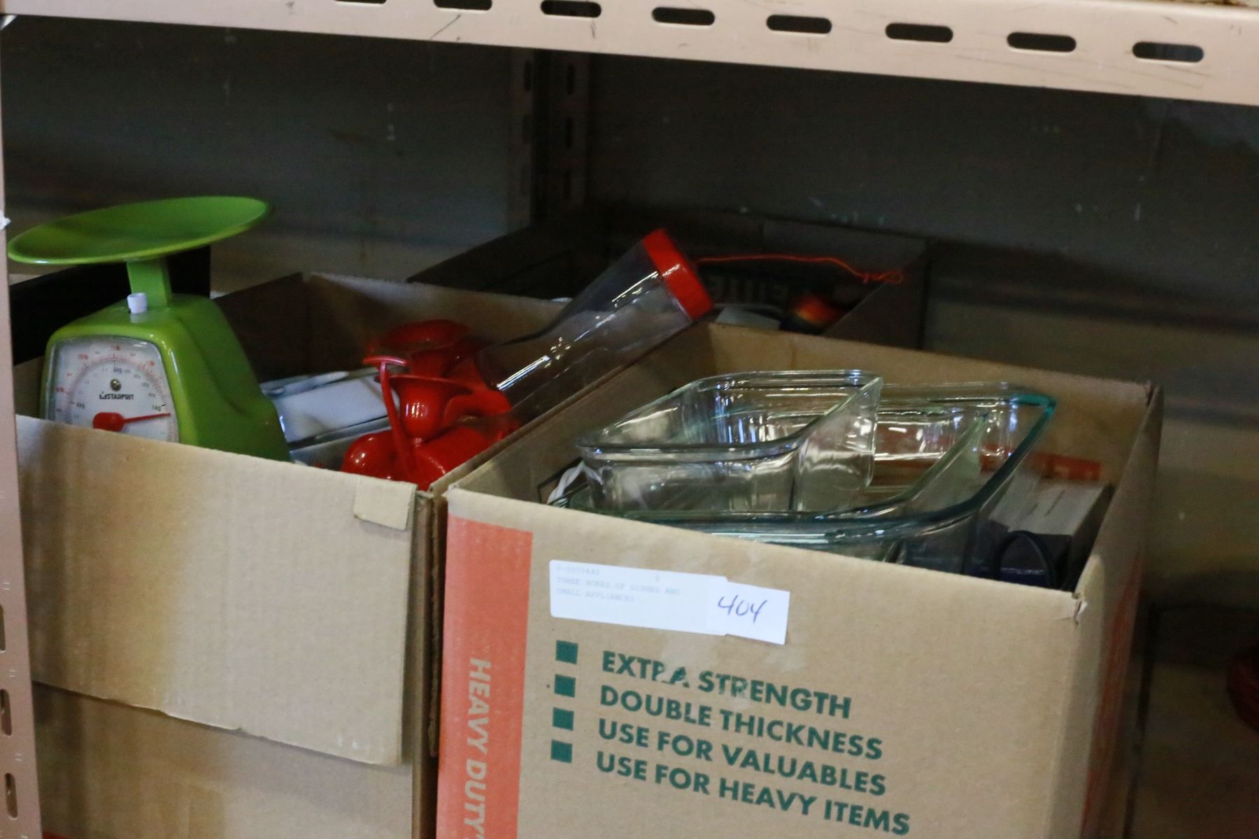 THREE BOXES OF DISHES AND SMALL APPLIANCES