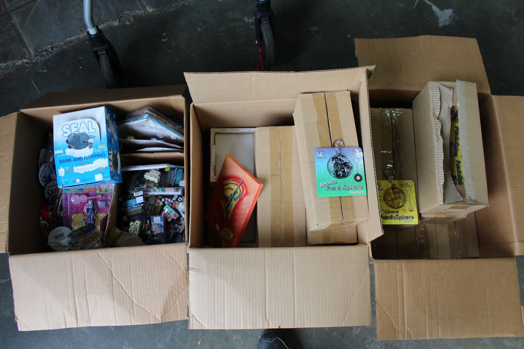 THREE BOXES OF KIDS TOYS AND PUZZLE KEY CHAINS