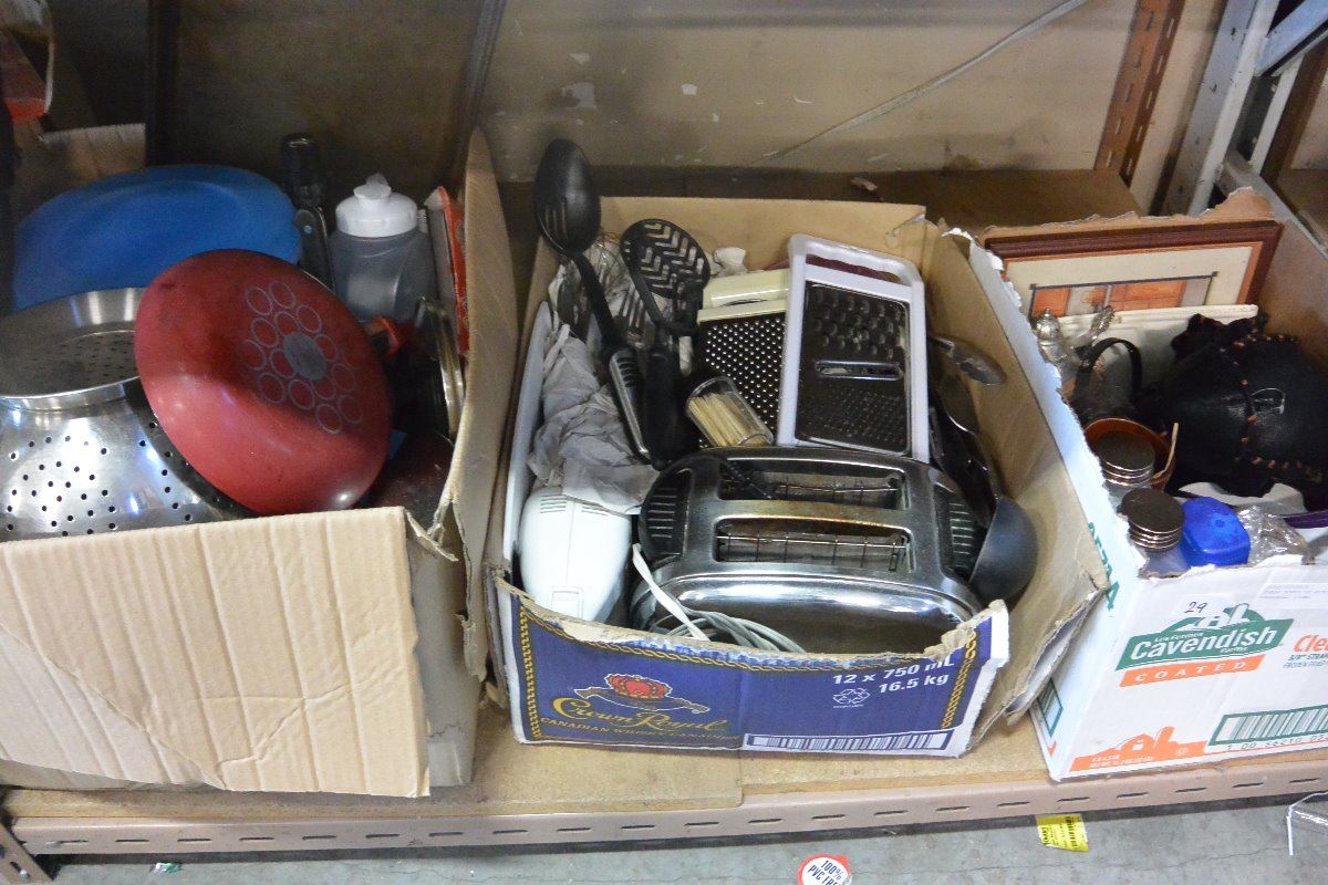 THREE BOXES OF KITCHEN AND HOUSEHOLD ITEMS