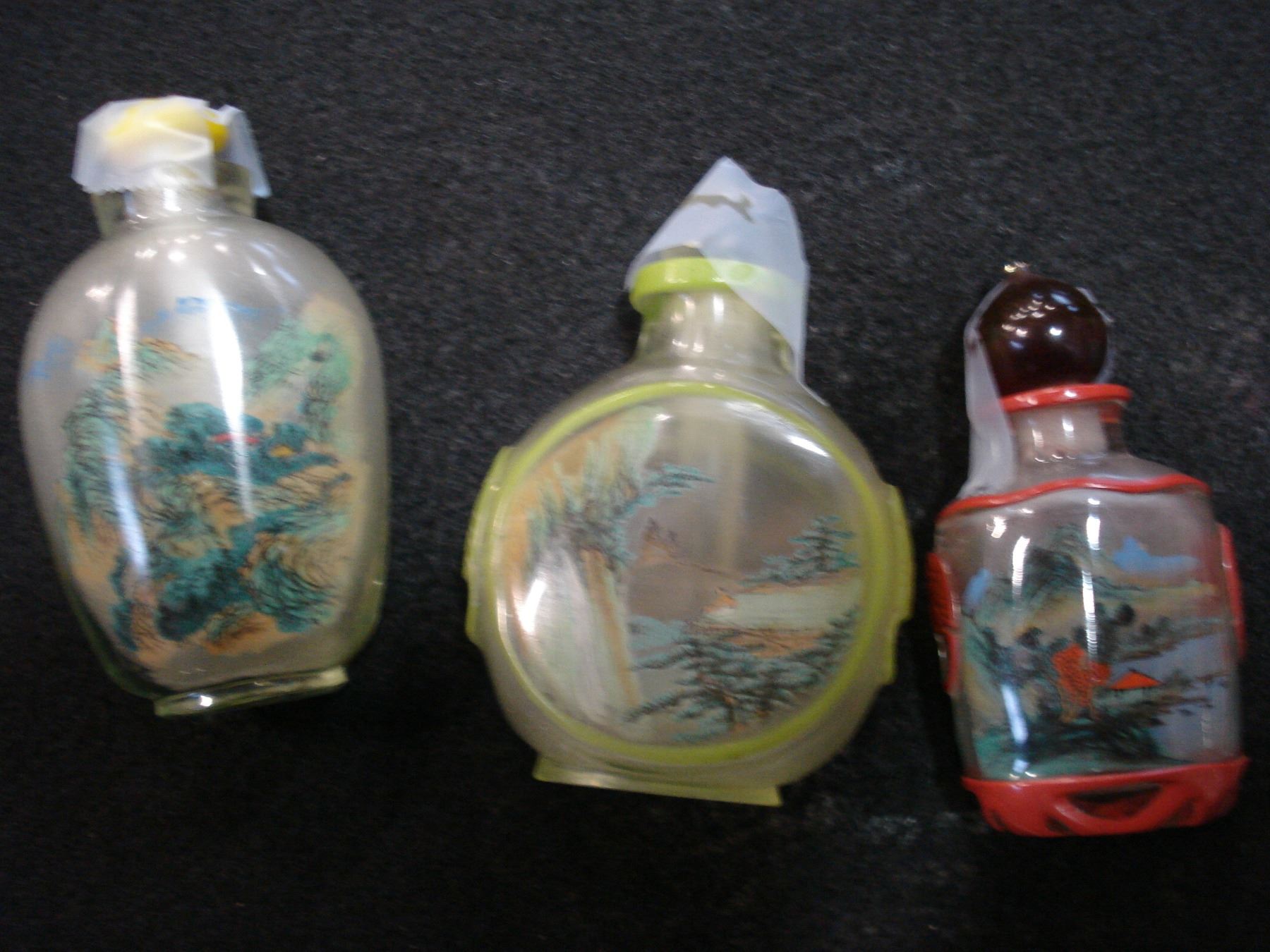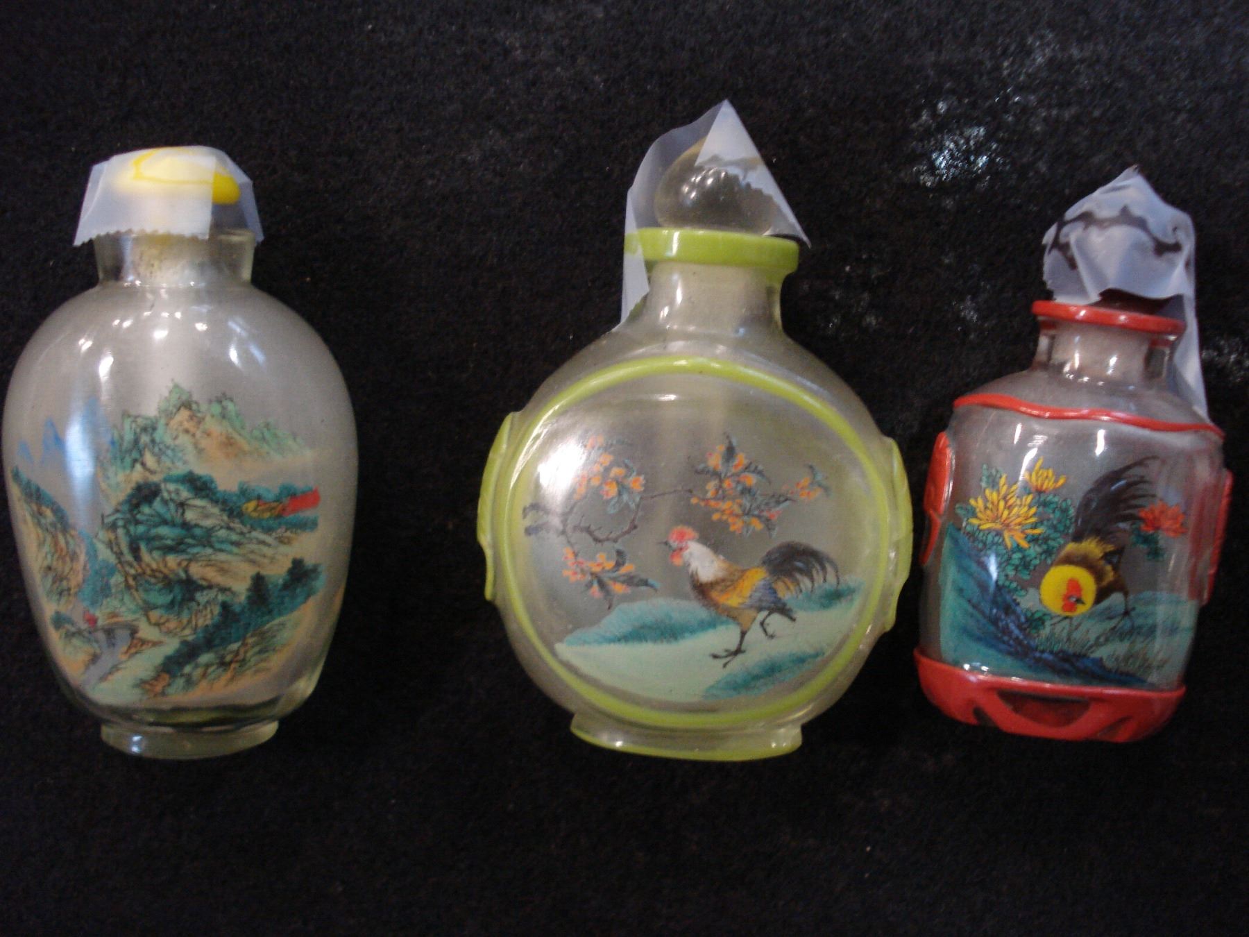 THREE CHINESE HAND PAINTED SNUFF BOTTLES