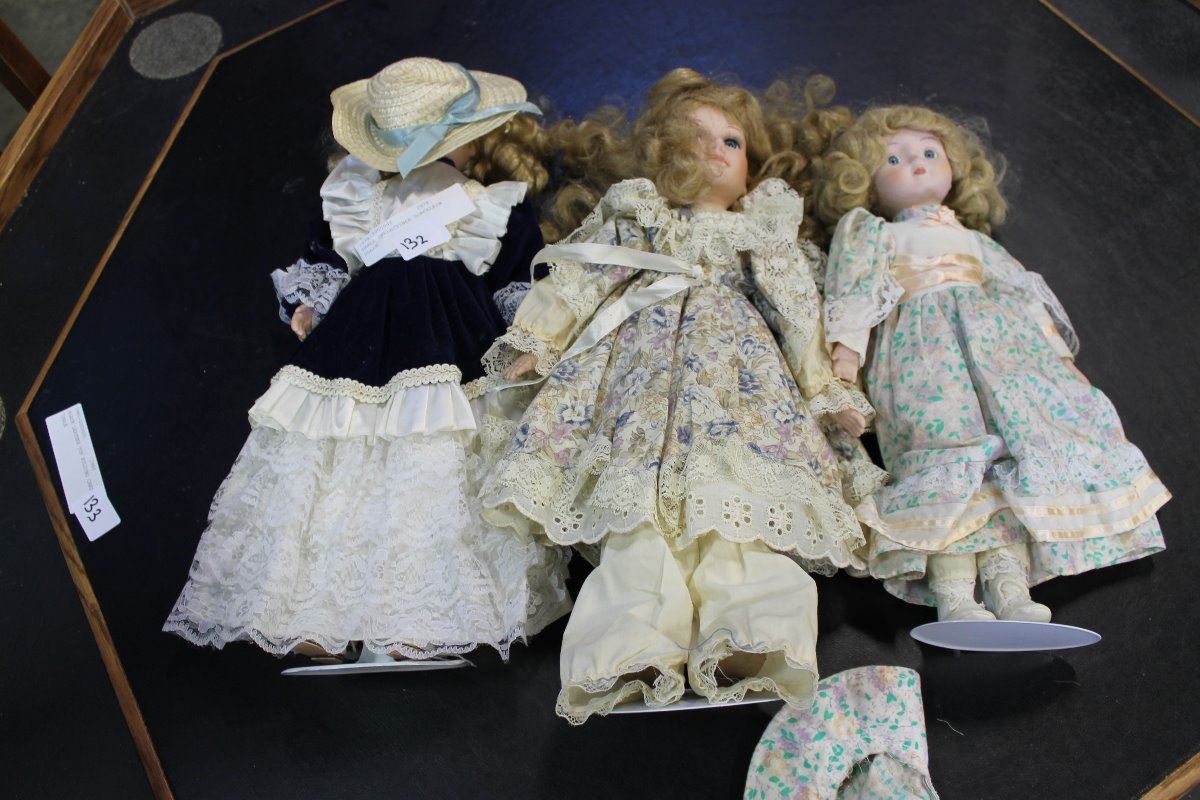 THREE COLLECTIBLE PORCELAIN DOLLS