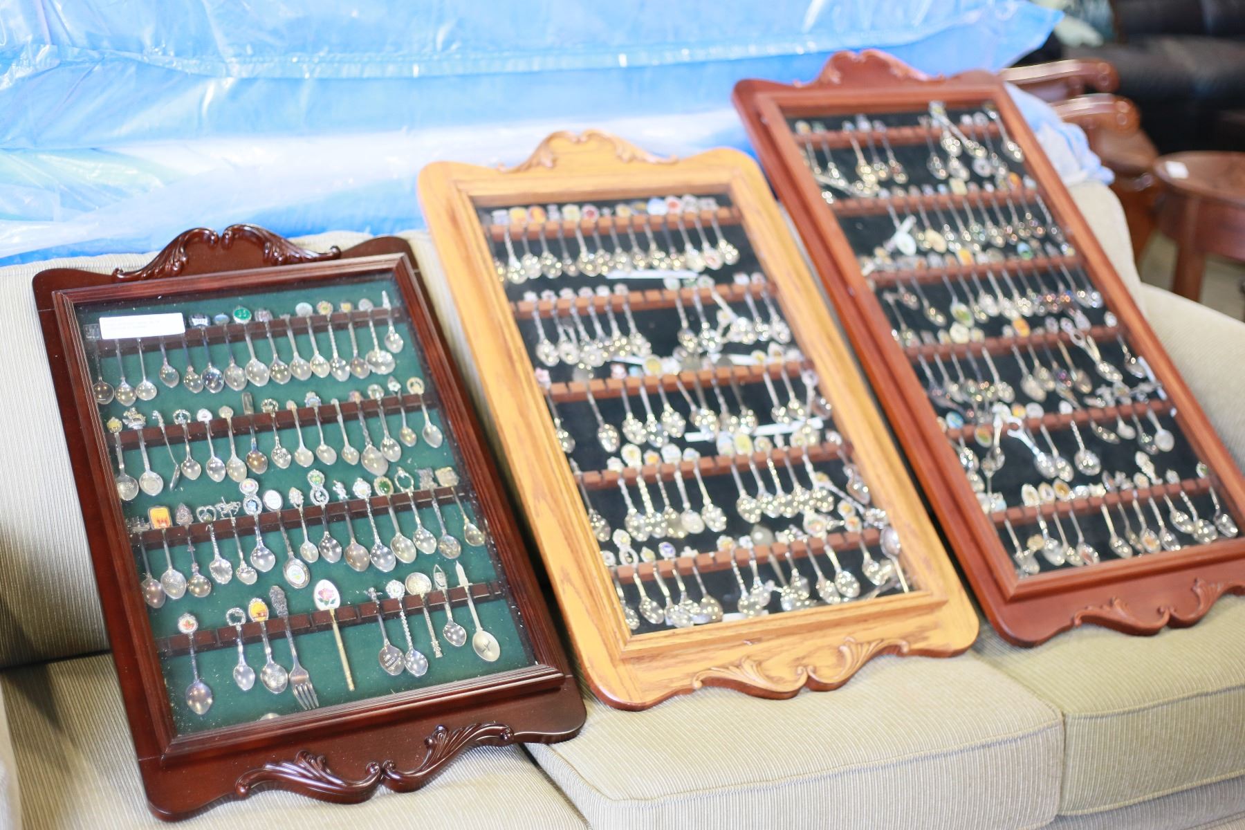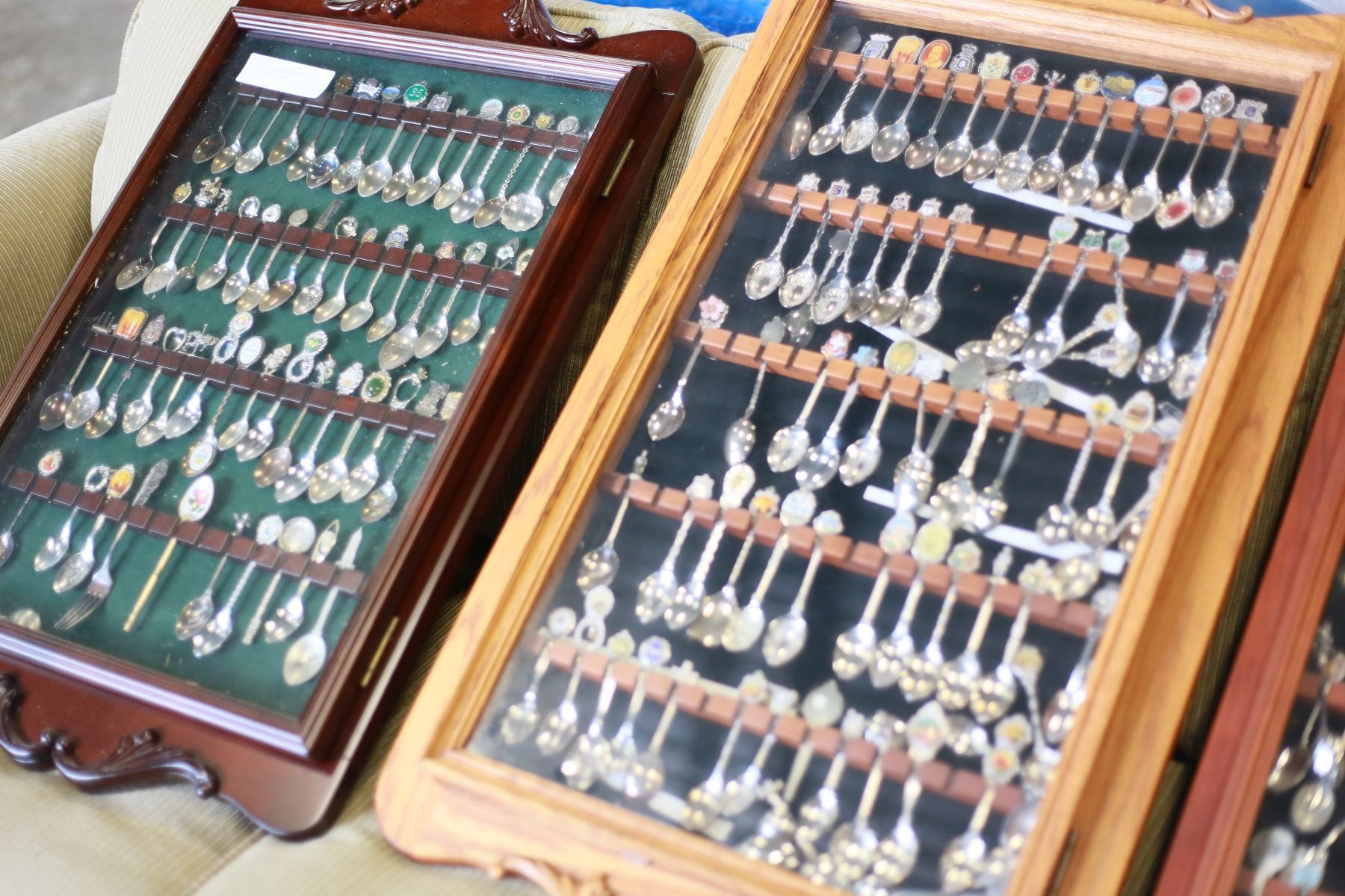 THREE DISPLAY CASES WITH COLLECTIBLE SPOONS
