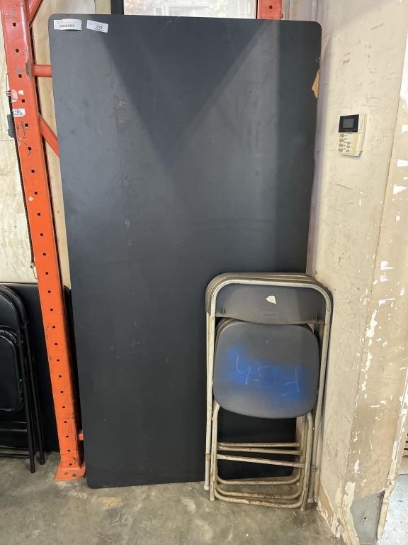 THREE FOLDING CHAIRS AND TABLE TOP 6' X 3'