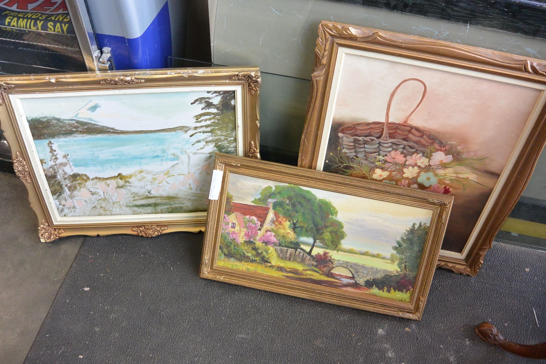 THREE GILT FRAMED PAINTINGS ON CANVAS