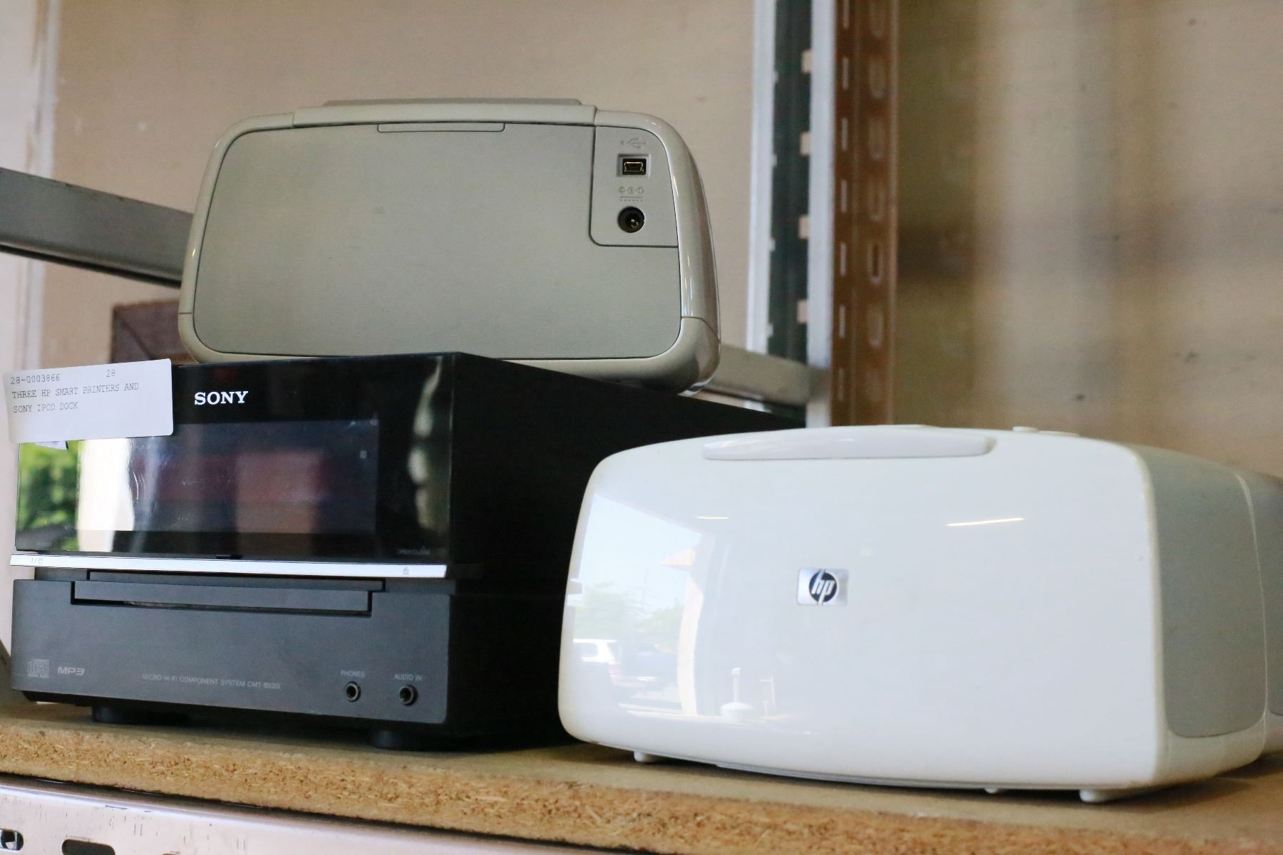 THREE HP SMART PRINTERS AND SONY IPOD DOCK