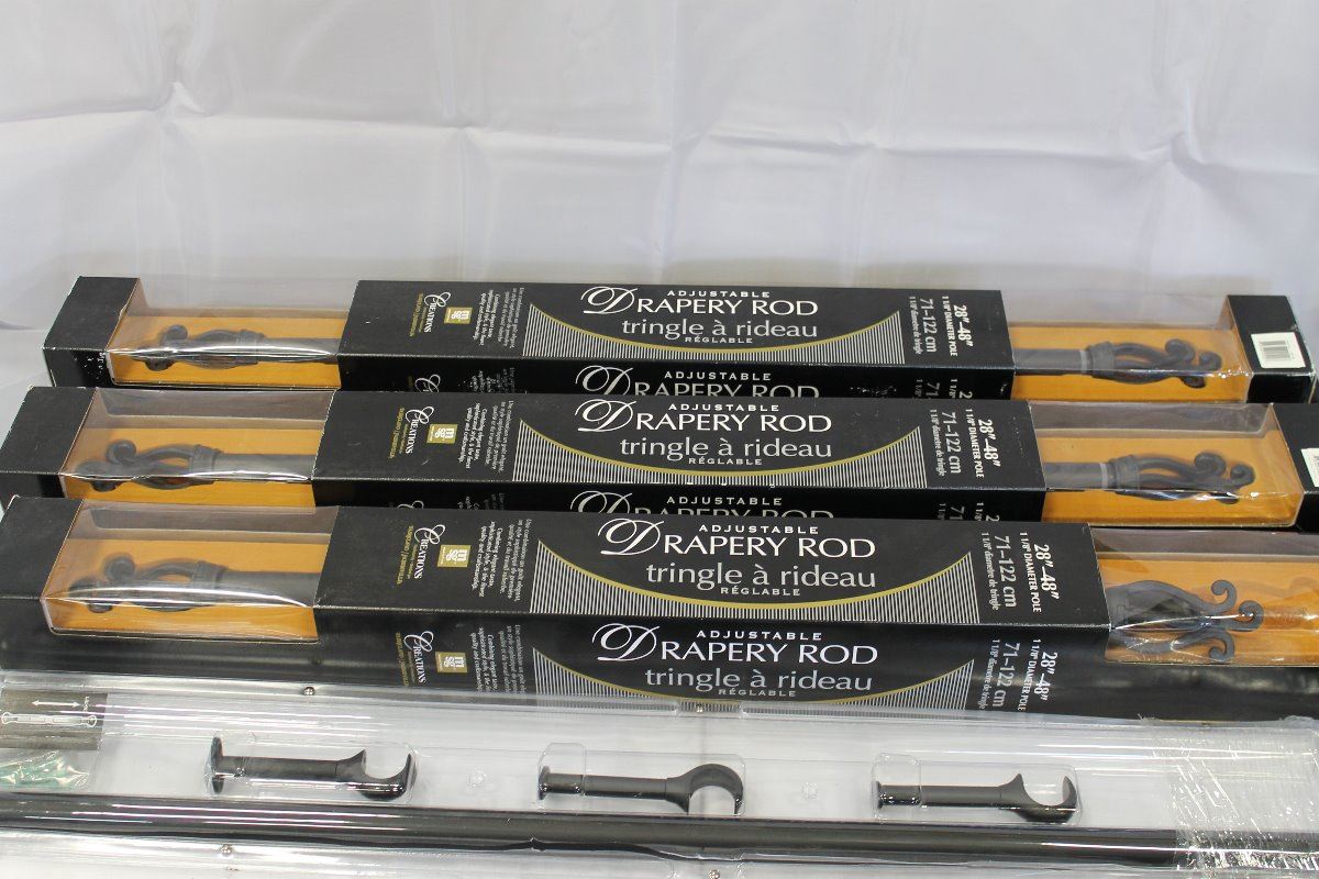 THREE NEW IN BOX DRAPERY RODS AND EXTENSION ROD