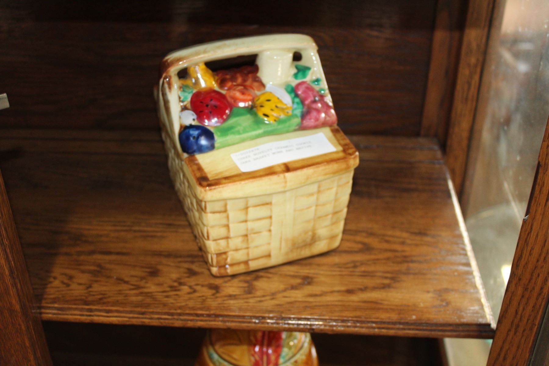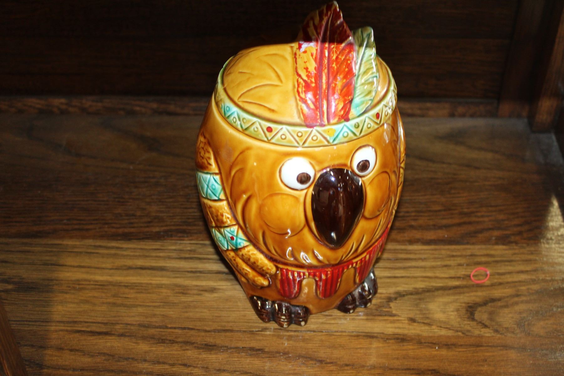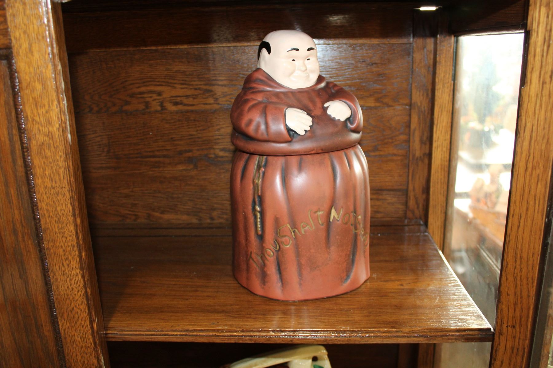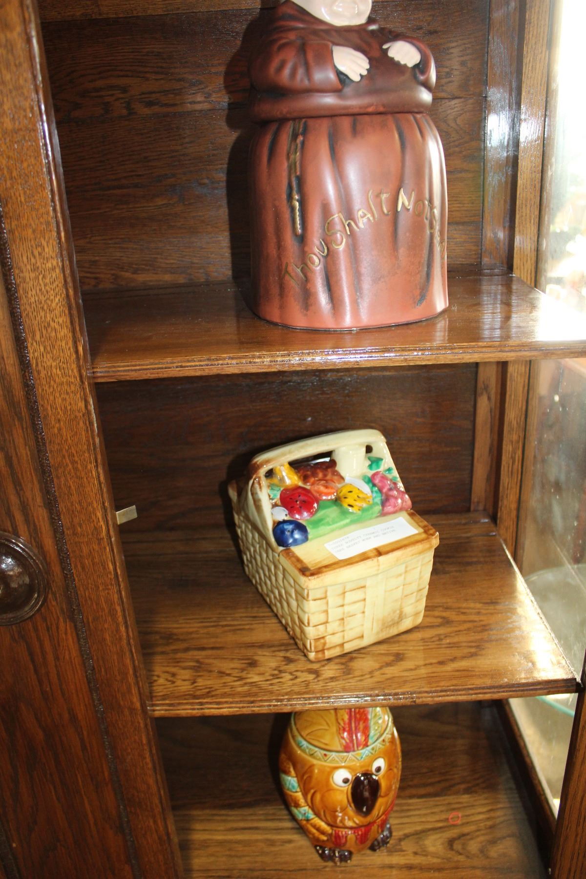 THREE NOVELTY CERAMIC COOKIE JARS BASKET MONK AND NATIVE