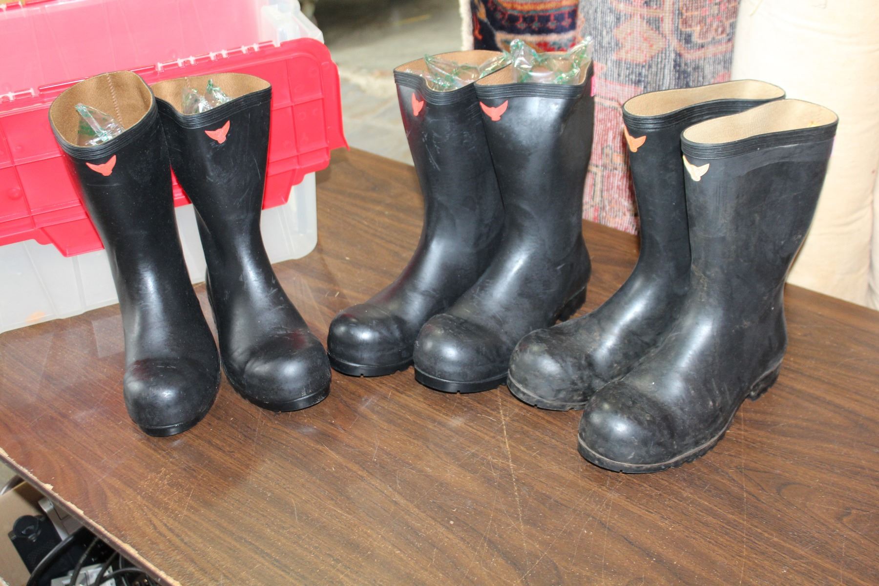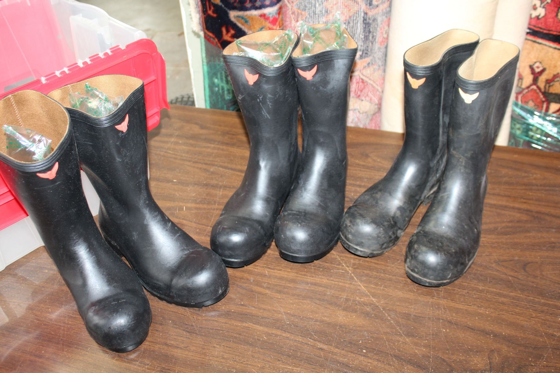 THREE PAIR OF STEEL TOE RAIN BOOTS