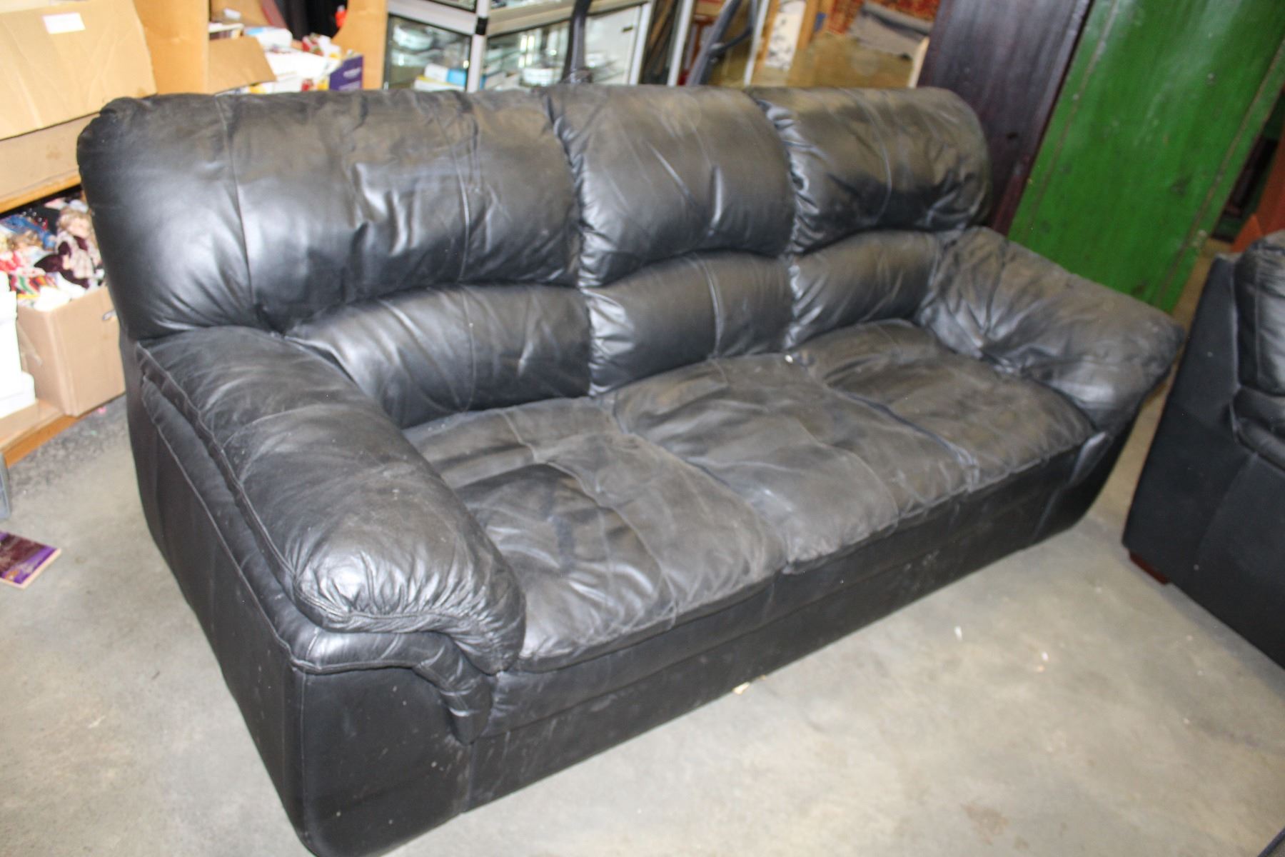 THREE PIECE BLACK LEATHER SOFA SET