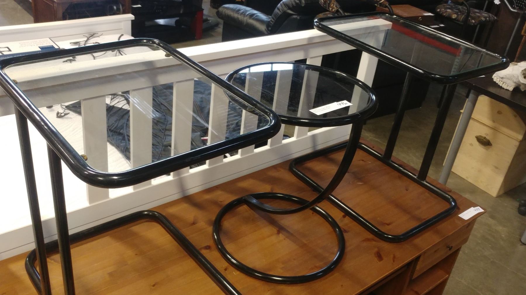 THREE PIECE BLACK METAL GLASSTOP ENDTABLE SET