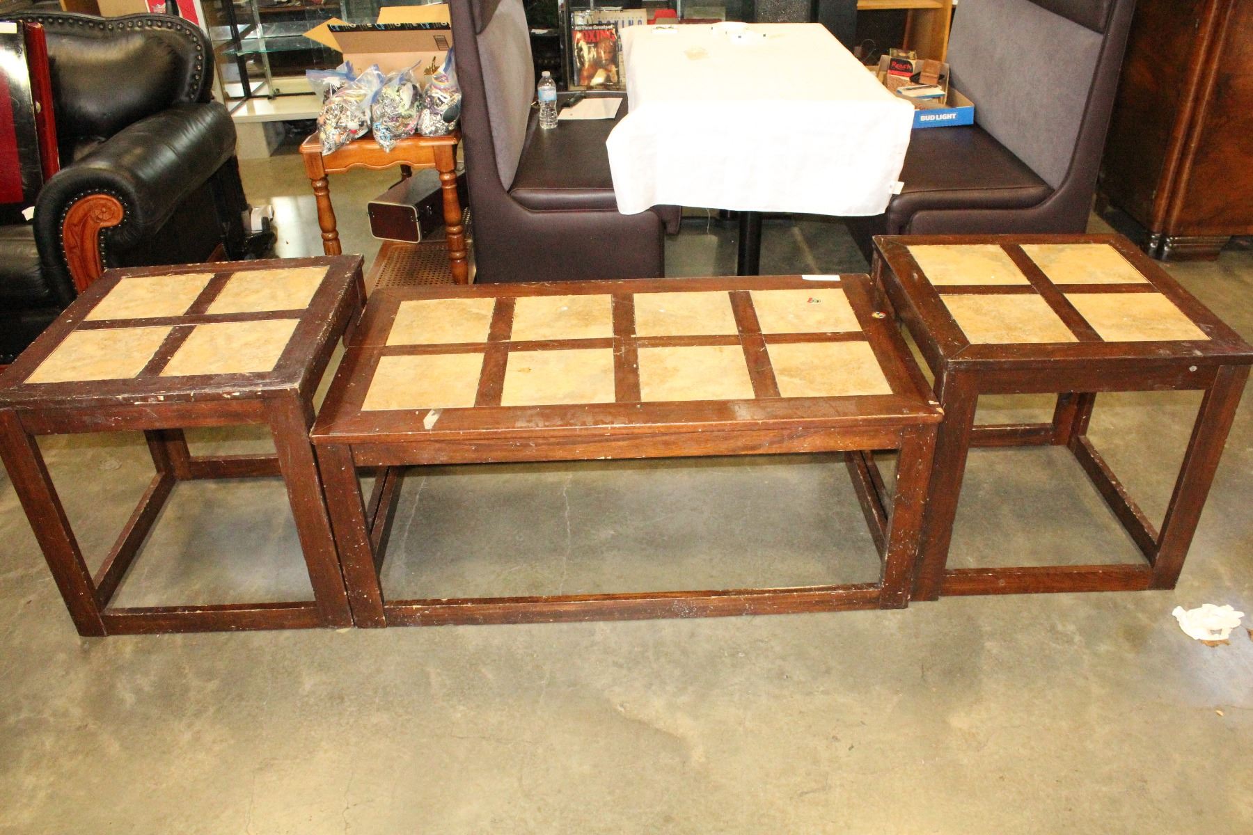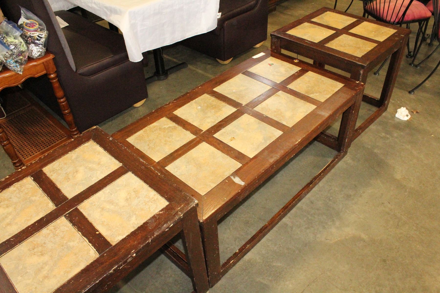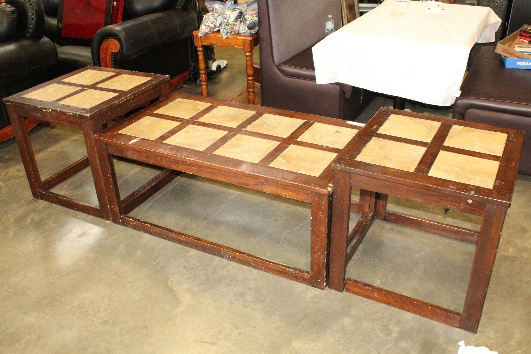 THREE PIECE TILE INSERT COFFEE TABLE SET