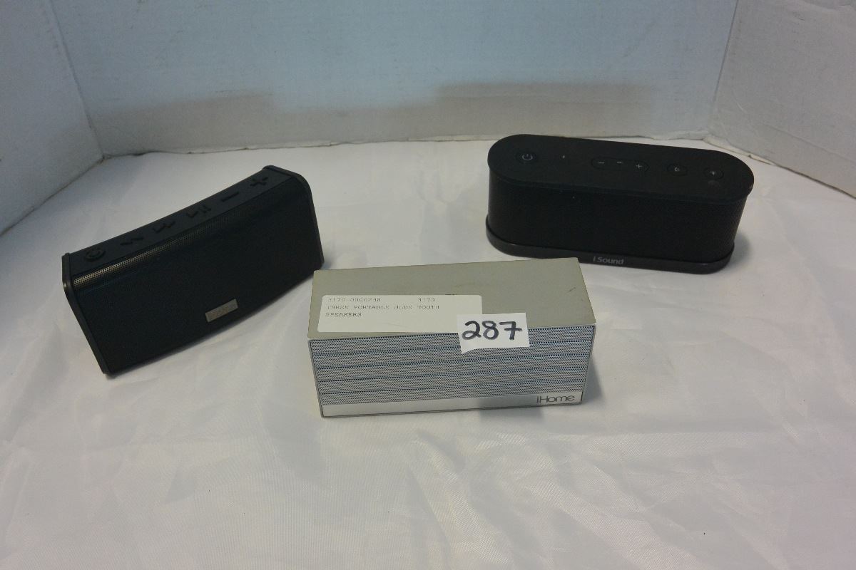 THREE PORTABLE BLUE TOOTH SPEAKERS